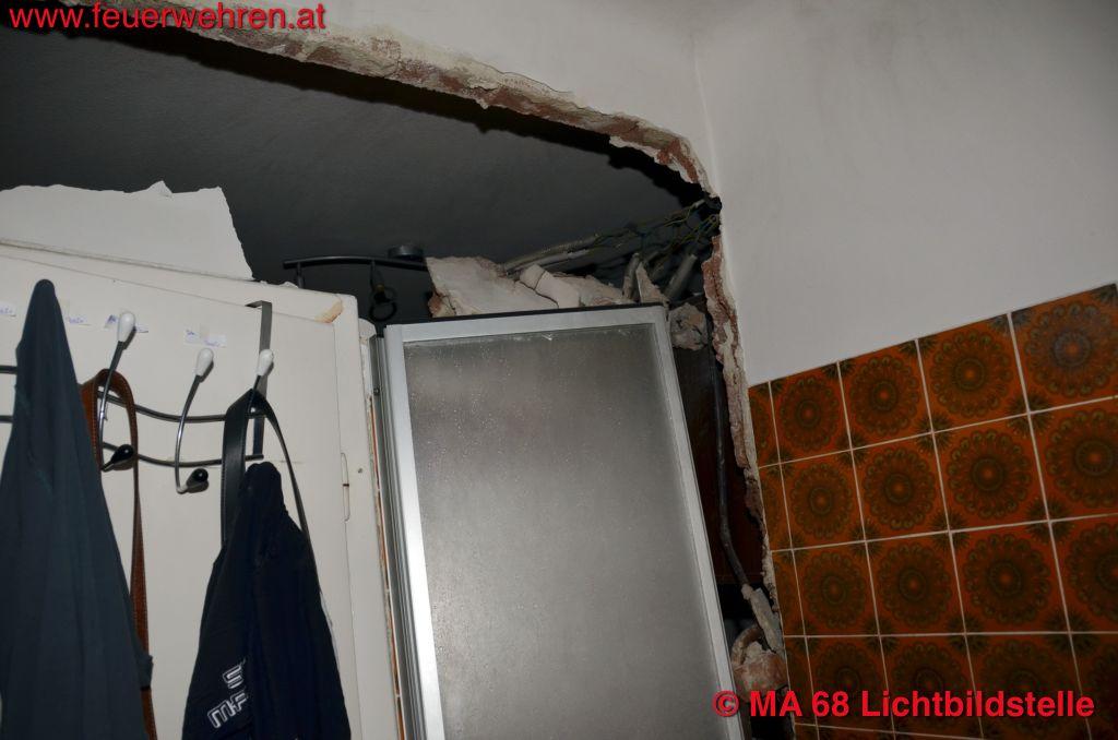 Vermutlich beim Versuch des Wohnungsinhabers, brennendes Speiseöl mit Wasser zu löschen, kam es durch das schlagartige Verdampfung des Wasser – Ölgemisches zu einer derart heftigen Verpuffungsreaktion, dass in der betroffenen Brandwohnung eine Zwischenwand beinahe vollständig umgelegt wurde.