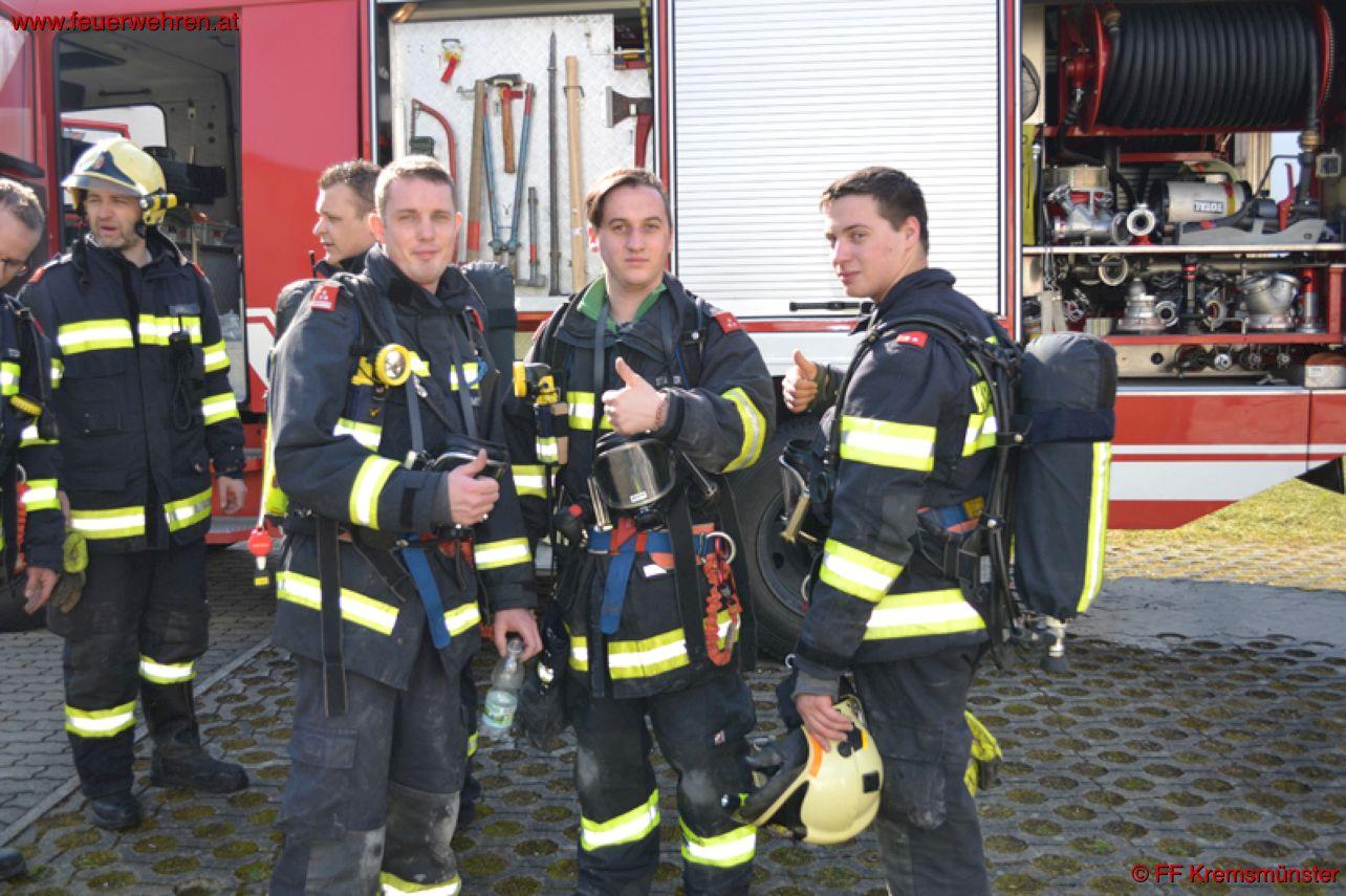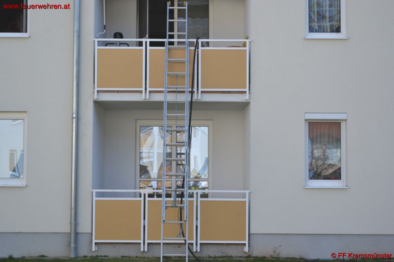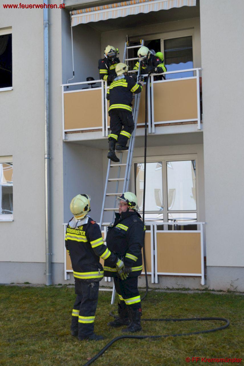 Am 07.03.2015 wurde die FF-Kremsmünster mit der FF-Irndorf und Krühub zu einen Brand in die Papiermühlstraße alarmiert. Bei der Alarmierung war schon bekannt, dass sich Personen am Balkon im 1.OG befanden. In der Wohnung befanden sich zum Zeitpunkt des Brandes ein 5 Jahre und ein 1,5 Jahre altes Kind. Noch bevor die Feuerwehr am Einsatzort eingetroffen ist, kletterte ein Anrainer über die Außenfassade in das erste Obergeschoß. Dort befand sich das 5-jährige Kind welches um Hilfe schrie. Als die Mutter, die gerade vom Einkaufen zurück kam, den Brand entdeckte, rannte diese rasch in die Wohnung um ihr 1,5 Jahre altes Kind zu retten.