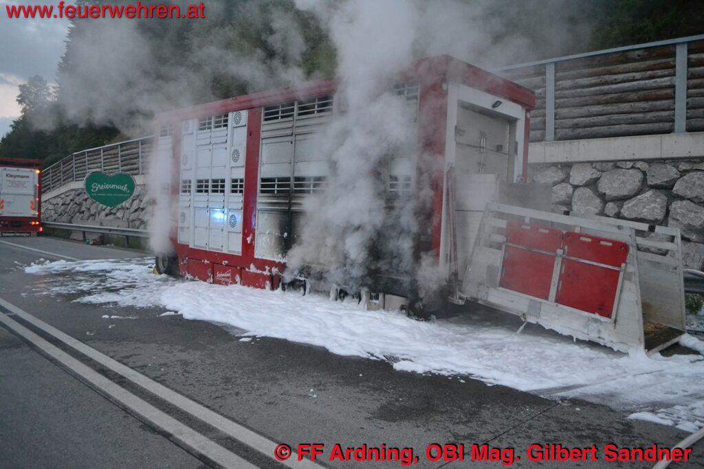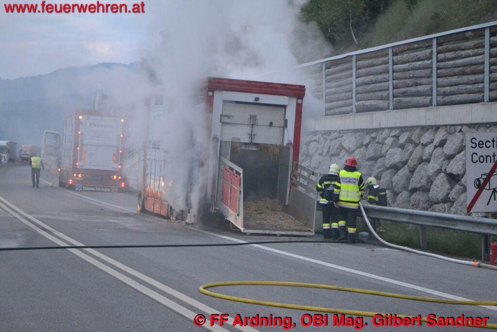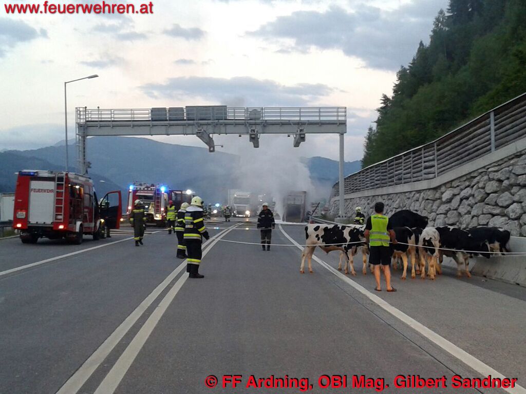 Im Einsatz waren die Feuerwehren Ardning, Frauenberg an der Enns und Selzthal. Die Erstmaßnahme bestand für die Einsatzkräfte aus der Evakuierung der am Anhänger geladenen Tiere. Insgesamt 37 junge Stiere konnten unversehrt ihr brennendes Gefängnis verlassen und wurden von den Feuerwehrmännern auf der A9 eingezäunt unter Kontrolle gehalten. Anschließend konnte die Brandbekämpfung durchgeführt werden.