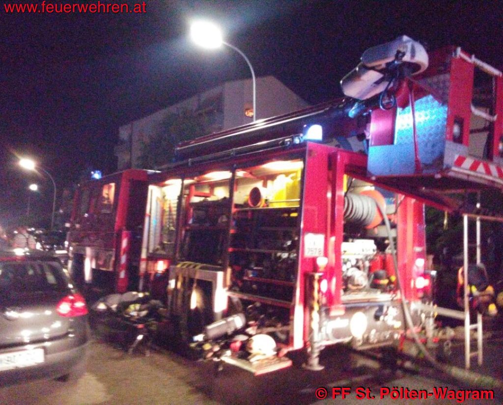 „Zimmerbrand in der Burgenlandstraße“ war in der Nacht von Freitag auf Samstag um 22:41 Uhr auf den Pagern der Feuerwehrmitglieder in St.Pölten-Wagram zu lesen – gemäß Alarmplan „Brand 2“ wurden sofort auch die Feuerwehren St.Pölten-Stadt und St.Pölten-Stattersdorf sowie der Rettungsdienst alarmiert.