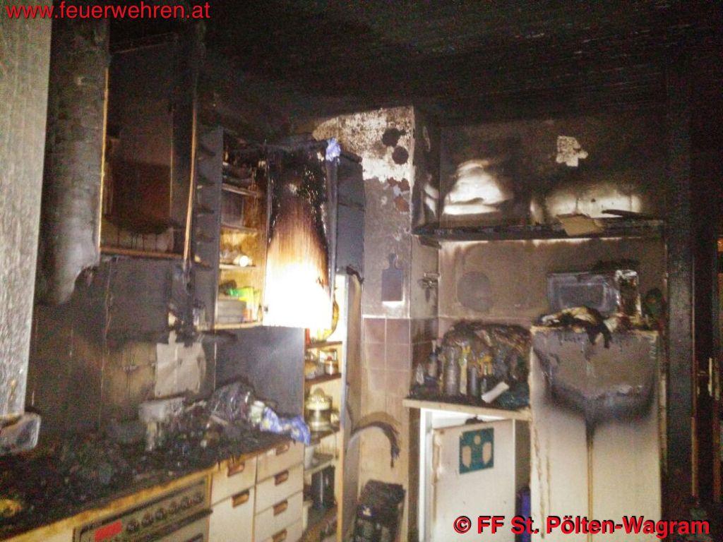 Die Atemschutztrupps löschten im Inneren des Wohnhauses die Glutnester ab – bei Eintreffen konnten kaum mehr offene Flammen entdeckt werden – und sorgten für eine Durchlüftung des Gebäudes unter Zuhilfenahme eines Druckbelüfters. Insgesamt wurden vier Atemschutztrupps von den Feuerwehren St.Pölten-Wagram und St.Pölten-Stadt in den Einsatz geschickt; ein weiterer Trupp der FF St.Pölten-Stadt und zwei Trupps der FF St.Pölten-Stattersdorf standen an der Einsatzstelle in Bereitschaft.