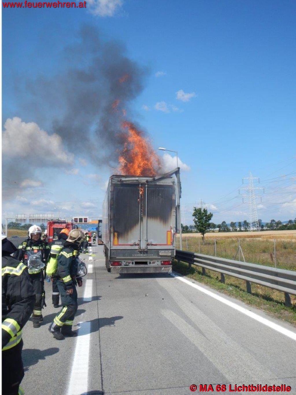 Aus bisher unbekannter Ursache war im hinteren Bereich des Sattelaufliegers eines, auf der S1 Fahrtrichtung Vösendorf fahrenden LKWs, ein Brand ausgebrochen.