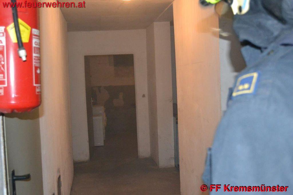 Ein Nachbar wurde auf den Brand aufmerksam und löschte den Brand mit einem Feuerlöscher. Die Aufgabe der Feuerwehren beschränkte sich nur mehr auf die Überdruck-Belüftung der Kellerräume, da es zu einer Rauchentwicklung in den Abteilen gekommen war. Nach kurzer Zeit konnten die Einsatzkräfte wieder einrücken.