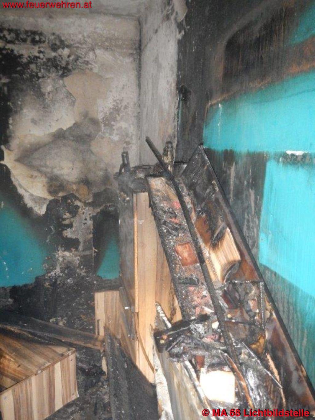 Der Brand im Schlafzimmer wurde von der Berufsfeuerwehr Wien unter Atemschutz mit einer Löschleitung bekämpft und abgelöscht.
