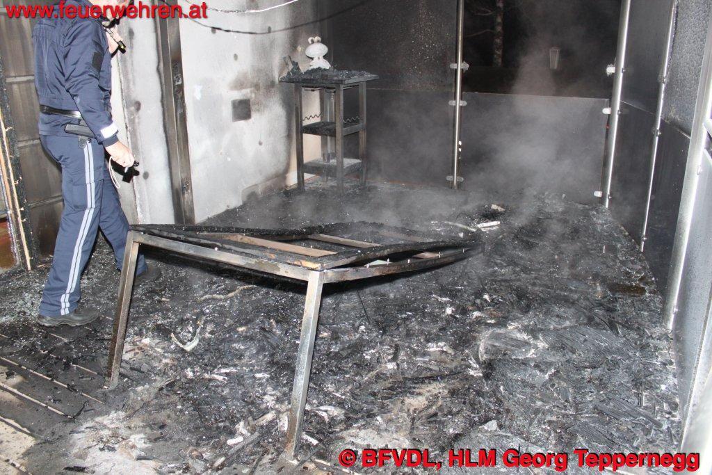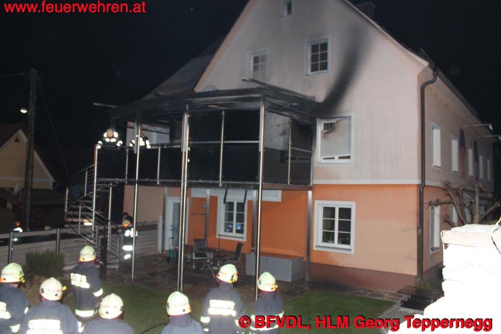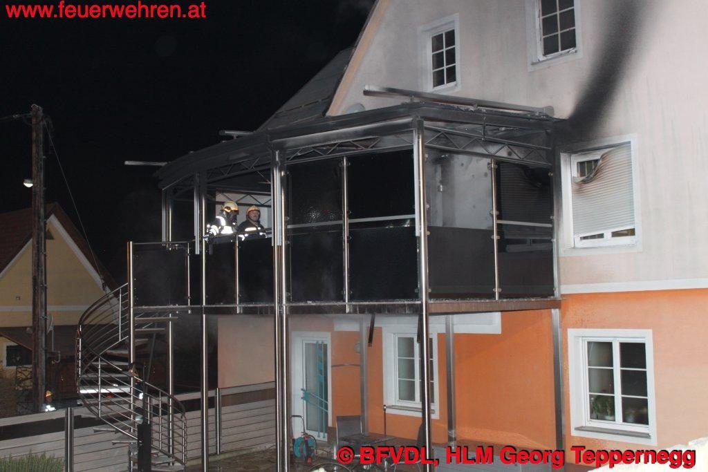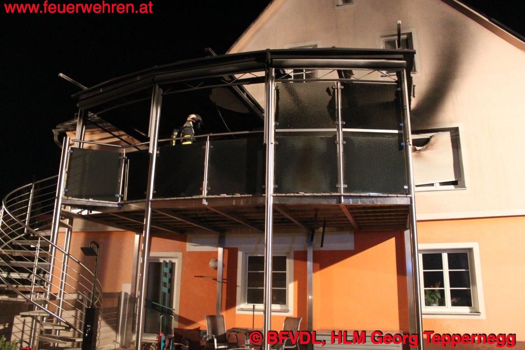 Der Hausbesitzer und Nachbarn die durch laute Knalle aus dem Schlaf gerissen wurden starteten erfolgreich erste Löschversuche mittels einem Gartenschlauch und Feuerlöschern.