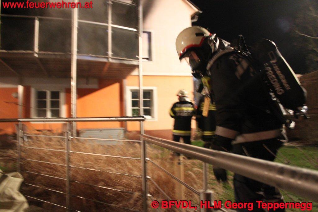 Der Einsatzbefehl lautete: Wohnhausbrand mitten im Ortskern von Preding. Sofort nach der Alarmierung eilten die drei Feuerwehren zum Einsatzort. Ein Trupp der FF Preding rüstete sich bereits bei der Anfahrt mit Atemschutz aus.