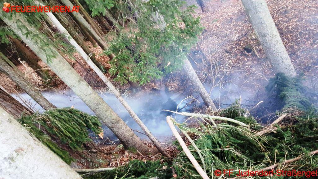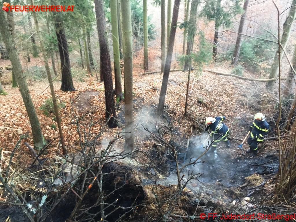 Ein kleines Waldstück von zirka 100m² hatte Feuer gefangen. Die Anrainer, welchen den Brand entdeckten, versuchten zuerst das Feuer selbst zu löschen. Nachdem sich das Feuer jedoch ausbreitete, wurde die Freiwillige Feuerwehr Judendorf-Straßengel verständigt.