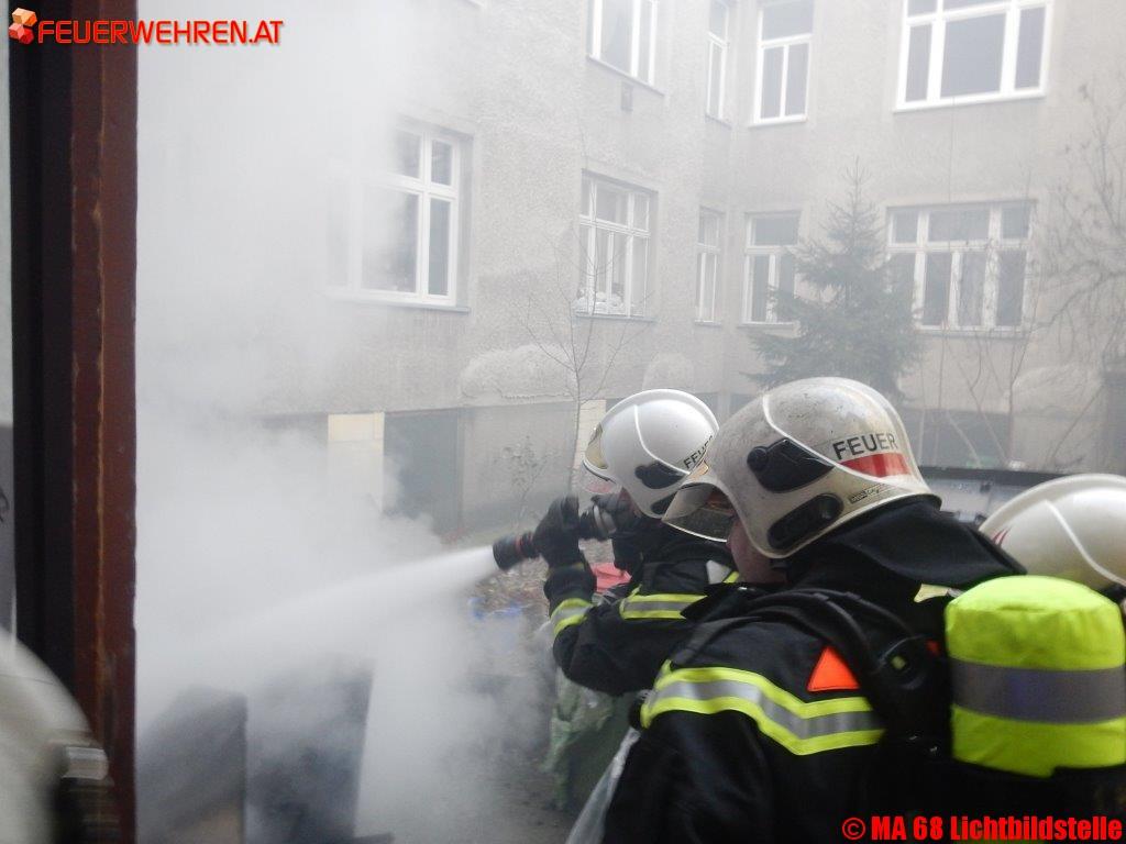 Von der Berufsfeuerwehr Wien wurde der Brand unter Atemschutz mit einer Löschleitung bekämpft und rasch abgelöscht. Zeitgleich zur Brandbekämpfung wurden mehrere Wohnungen kontrolliert. Der Keller wurde mit einem Hochleistungsbelüftungsgerät entraucht. Verletzt wurde niemand.