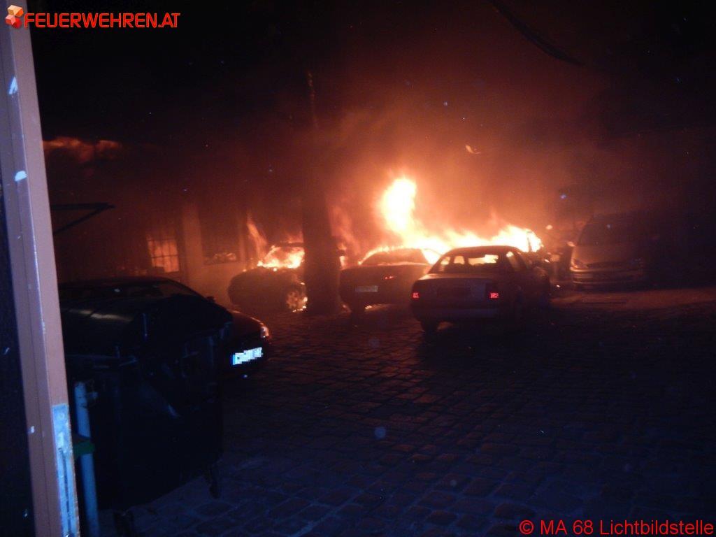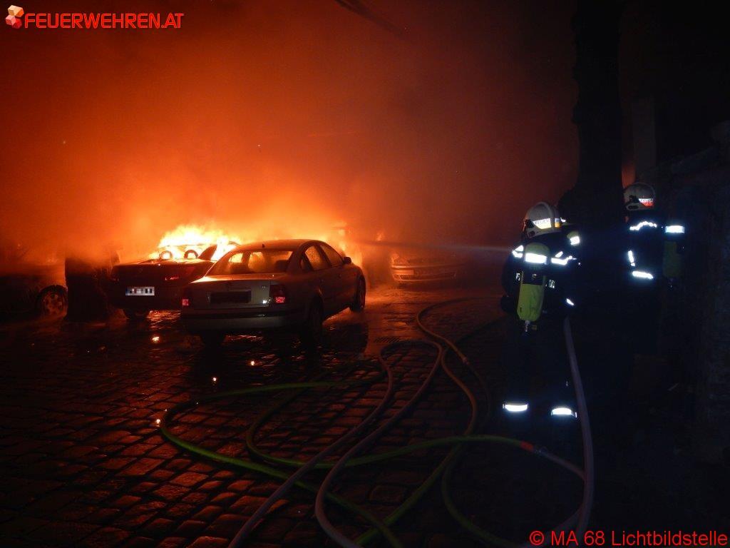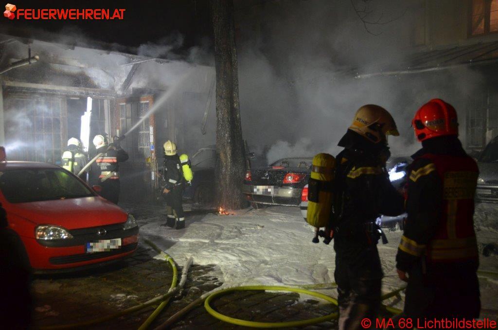 Wien (OTS) – In der Nacht von Silvester auf Neujahr sind in Wien – Wieden im Innenhof eines Mehrparteienwohnhauses mehrere, vor einer Hinterhofwerkstatt abgestellte Kraftfahrzeuge (PKWs und Motorräder) in Brand geraten. Dieser Werkstättenbrand hatte beim Eintreffen der Berufsfeuerwehr Wien bereits auf Teile der im Hinterhaus befindlichen Werkstätte und ein Nebengebäude des KFZ-Betriebes übergegriffen.