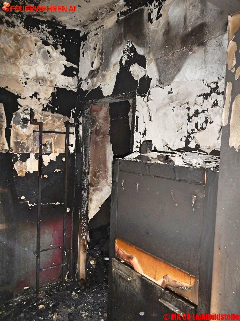 Während ein Teil der Einsatzkräfte das Feuer bekämpfte, wurde ein Mann aus dem dritten Stock über ein Gangfenster mit einer Drehleiter gerettet. Ein weiterer Trupp fand im komplett verrauchten Stiegenhaus eine Frau im Bereich des 3.Stocks. Sie wurde mit einer Fluchtfiltermaske ins Freie gebracht und, ebenso wie die anderen beiden Personen, von der Berufsrettung Wien weiterbetreut und in ein Krankenhaus gebracht. In der Brandwohnung wurde überdies eine tote Katze gefunden.
