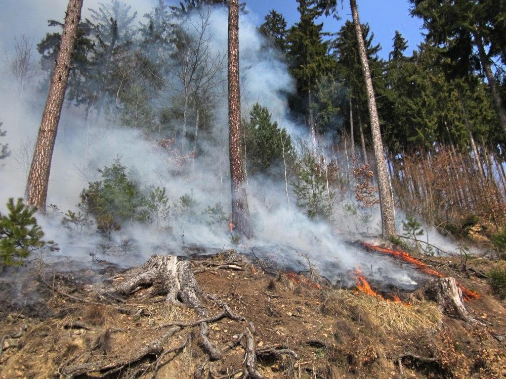 Noch während der Anfahrt hat der Einsatzleiter OLMdF Matthias Huber die Alarmierung der Nachbarfeuerwehren von Judendorf-Straßengel und Steinberg-Rohrbach über die Landesleitzentrale veranlasst. Um 12.50 Uhr trafen die ersten Feuerwehreinheiten am Brandplatz am Heilandkogel ein. Im Ausmaß von etwa 5.000 m² fand die Feuerwehr einen Bodenbrand in einem Fichten- und Lärchenwald, von der angrenzenden Forststraße bis etwa 70 m das Gelände hinauf, vor.