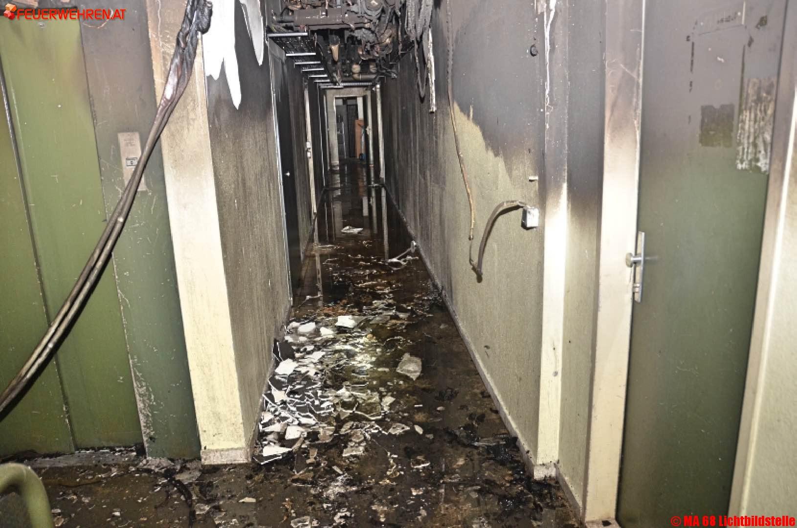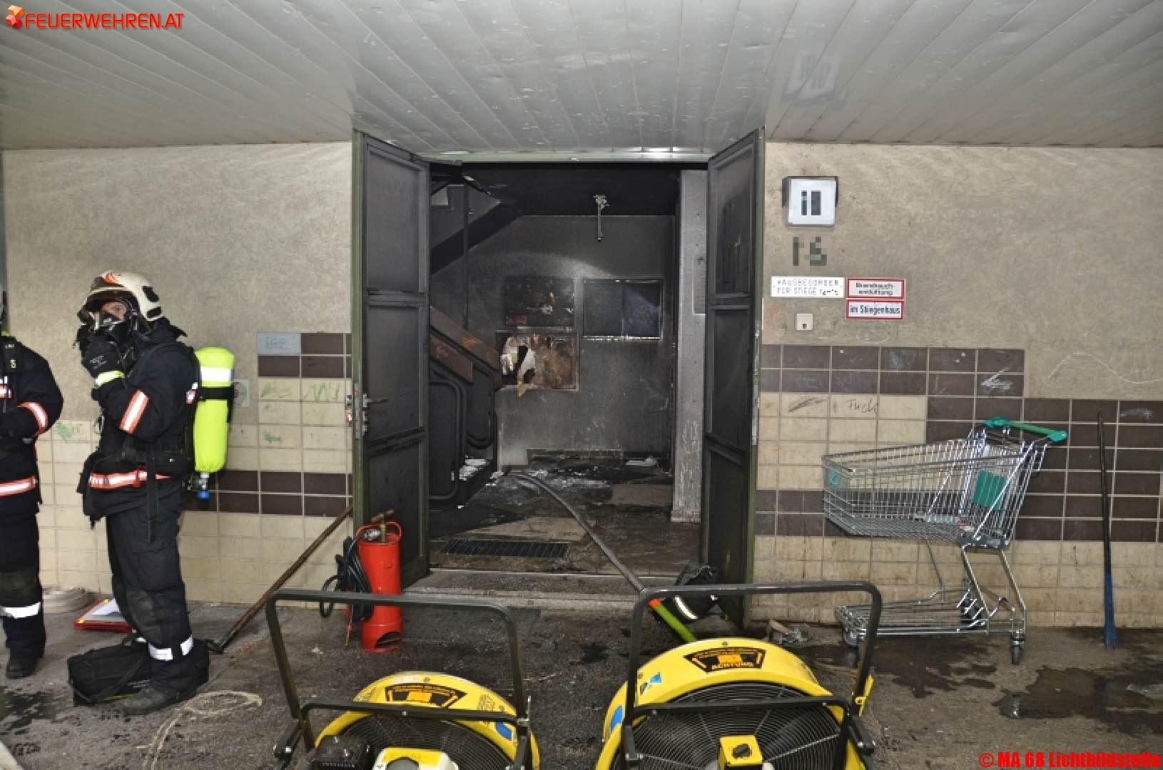 Durch zahlreiche Atemschutztrupps konnte der Kellerbrand rasch unter Kontrolle gebracht und die Bewohner beruhigt werden. Durch das besonnene Verhalten der Bewohner, welche in ihren Wohnungen bzw. auf ihren Balkonen blieben, und dem raschen Eingreifen der Berufsfeuerwehr Wien gab es bei diesem Einsatz keine Verletzten. Schlussendlich wurde der Brand gänzlich abgelöscht und die Stiegenhäuser solange belüftet, bis diese wieder rauchfrei waren.