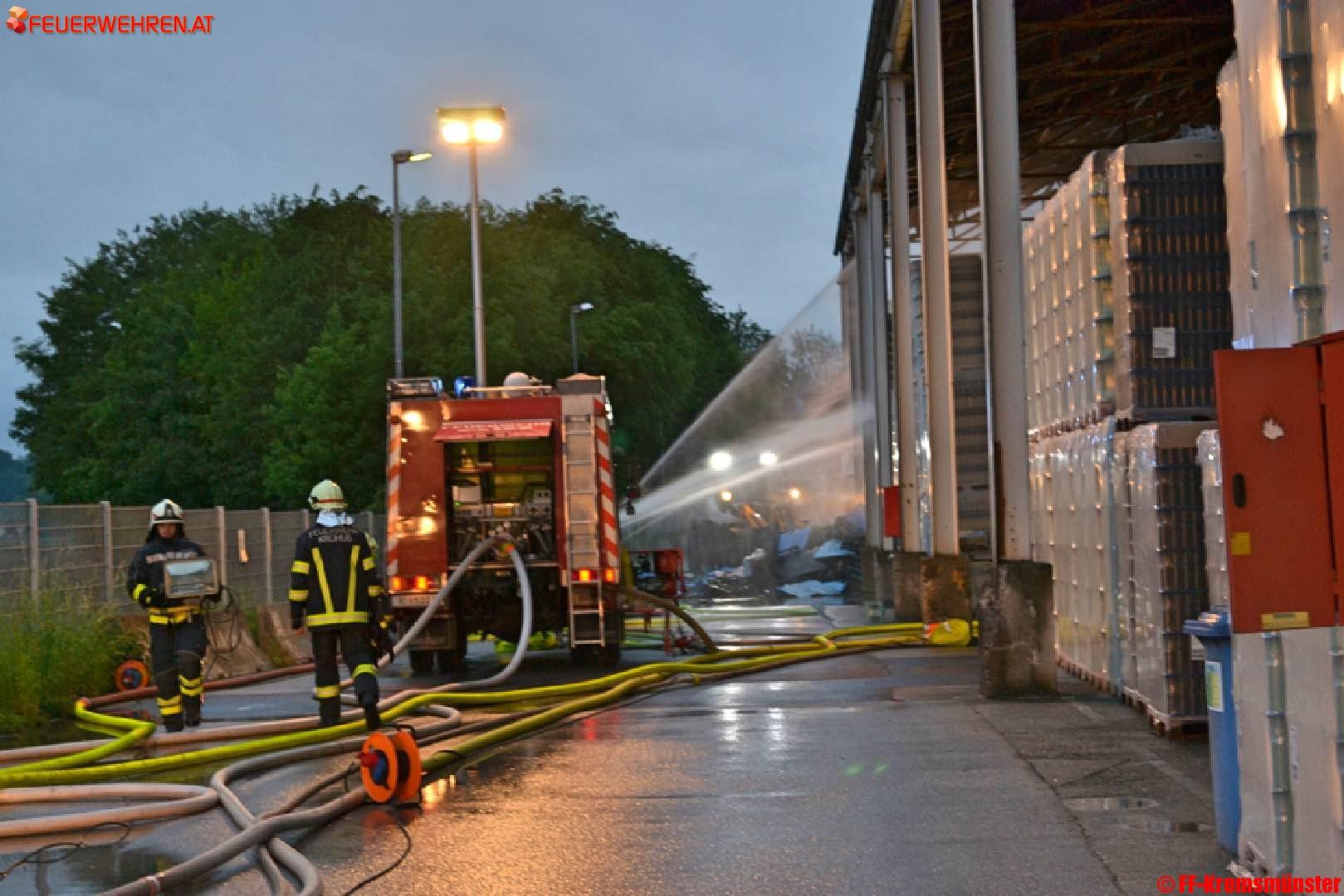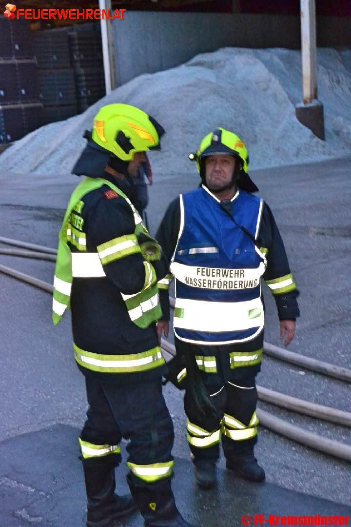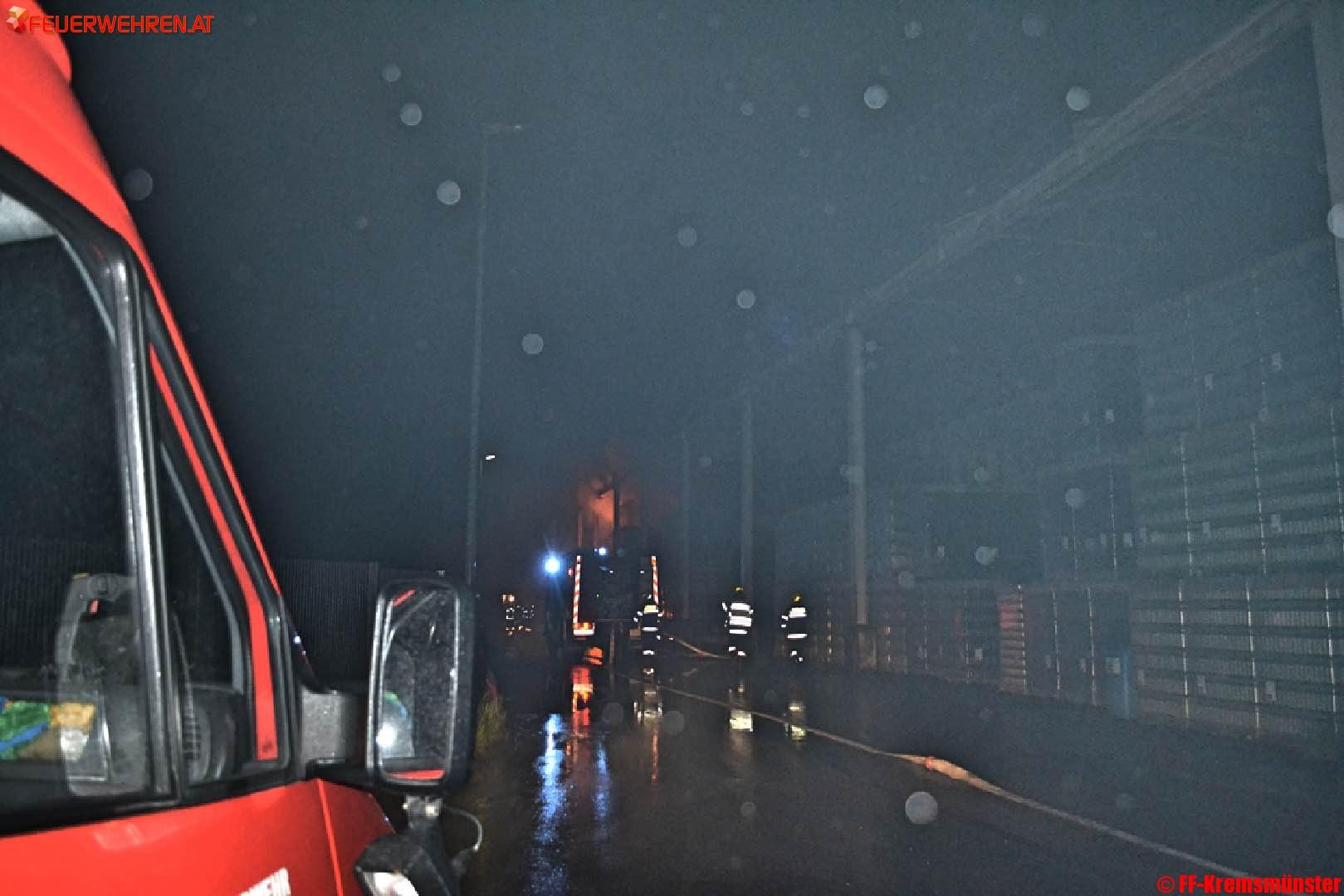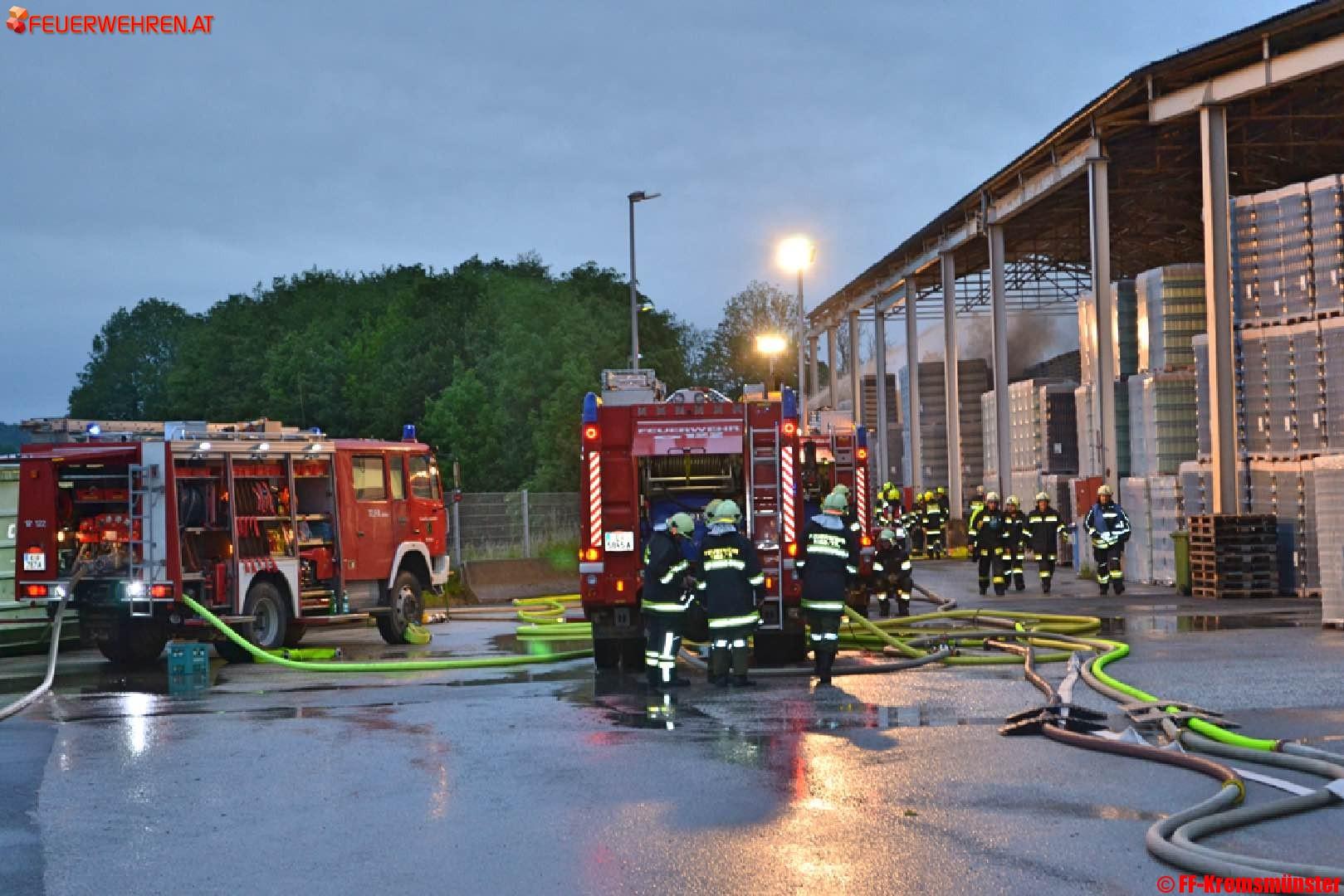 Beim Eintreffen der ersten Löschkräfte stand ein Teil des Lagergutes in der Halle in Vollbrand. Noch vor dem Eintreffen der Feuerwehr wurde von einem Mitarbeiter über die LWZ die drei Feuerwehren des Pflichtbereiches Kremsmünster alarmiert.
