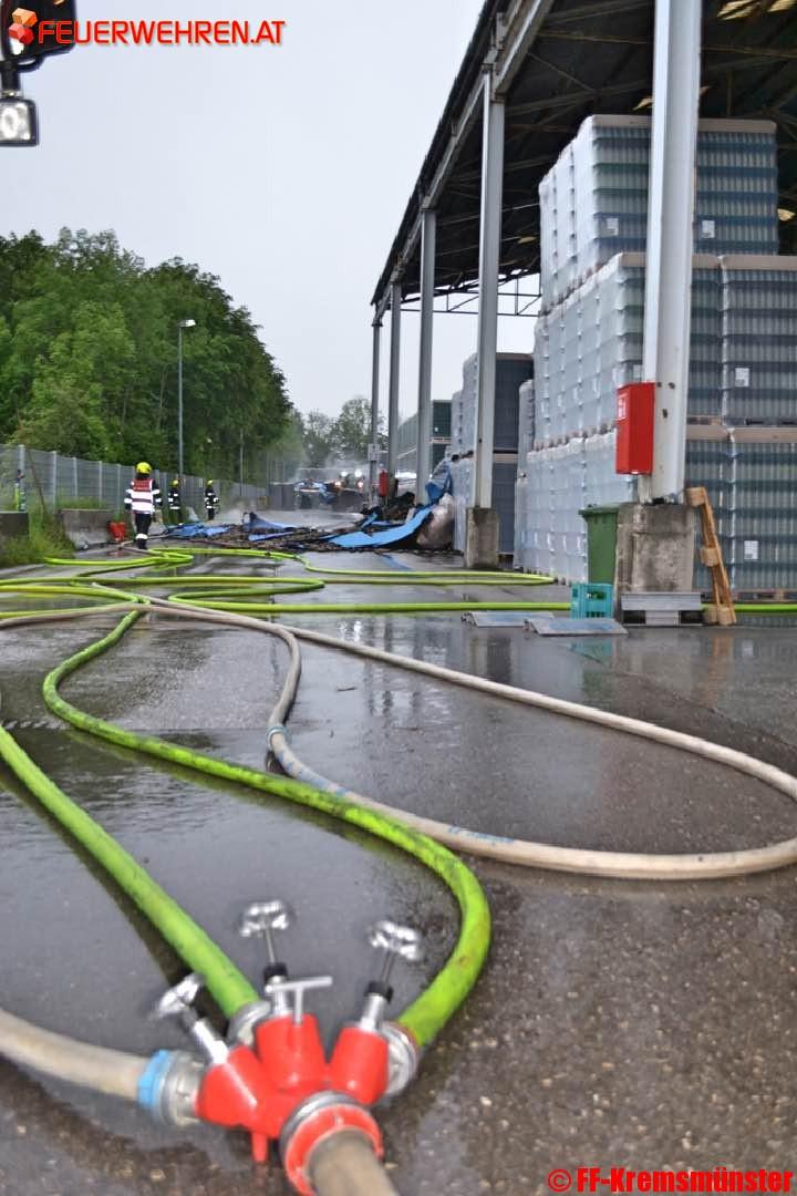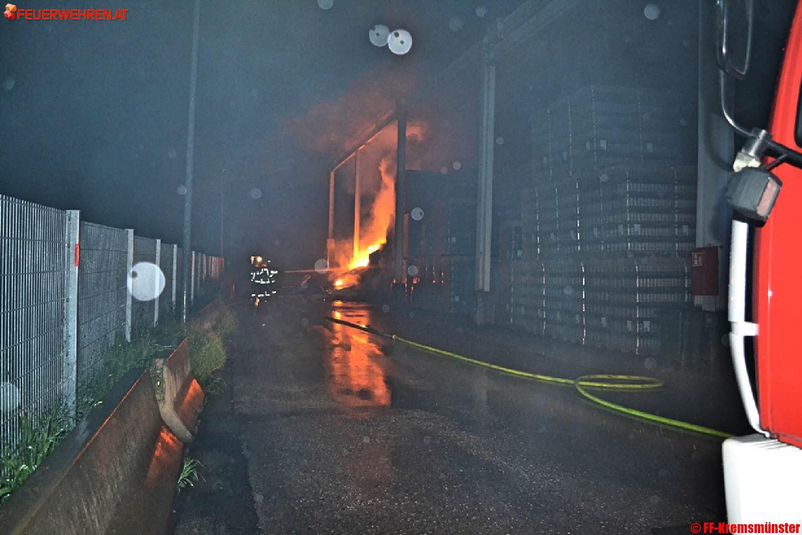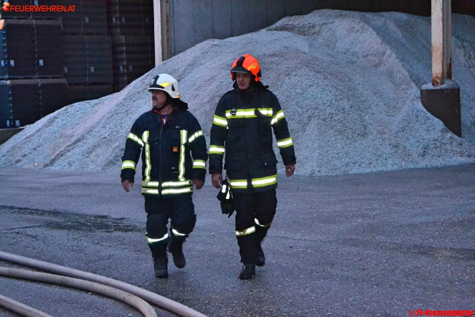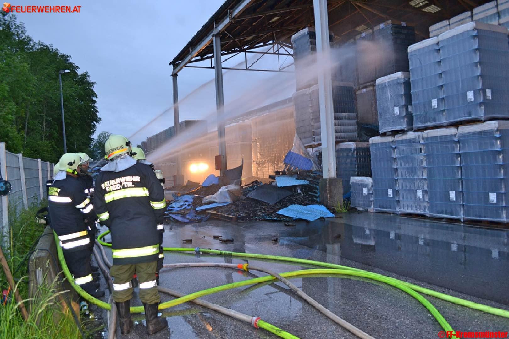 Beim Eintreffen der ersten Löschkräfte stand ein Teil des Lagergutes in der Halle in Vollbrand. Noch vor dem Eintreffen der Feuerwehr wurde von einem Mitarbeiter über die LWZ die drei Feuerwehren des Pflichtbereiches Kremsmünster alarmiert.