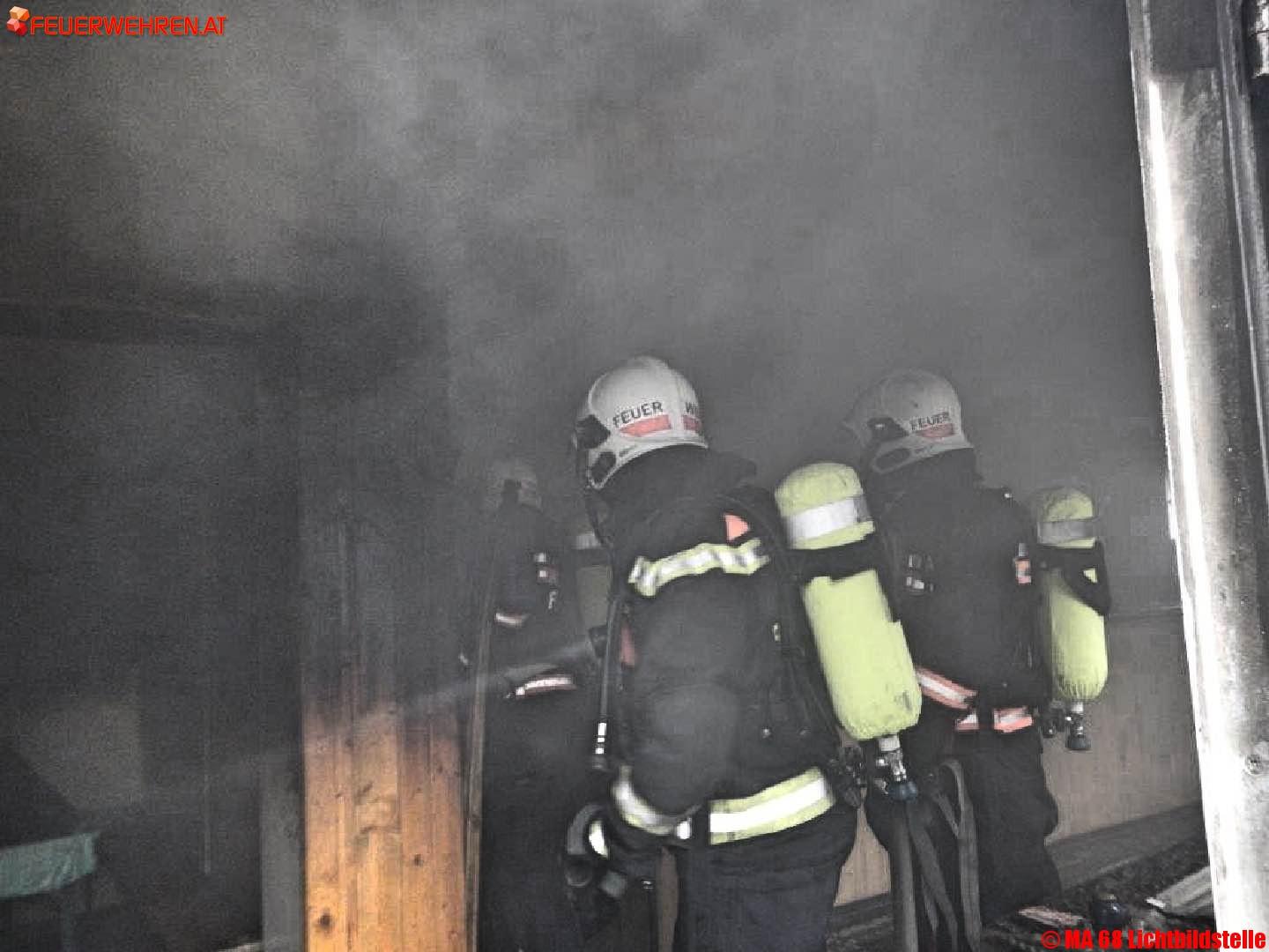Beim Eintreffen der Berufsfeuerwehr Wien hatte sich der Brand bereits nahezu auf den gesamten Küchenbereich sowie auf den Schank- und den Lagebereich ausgebreitet.