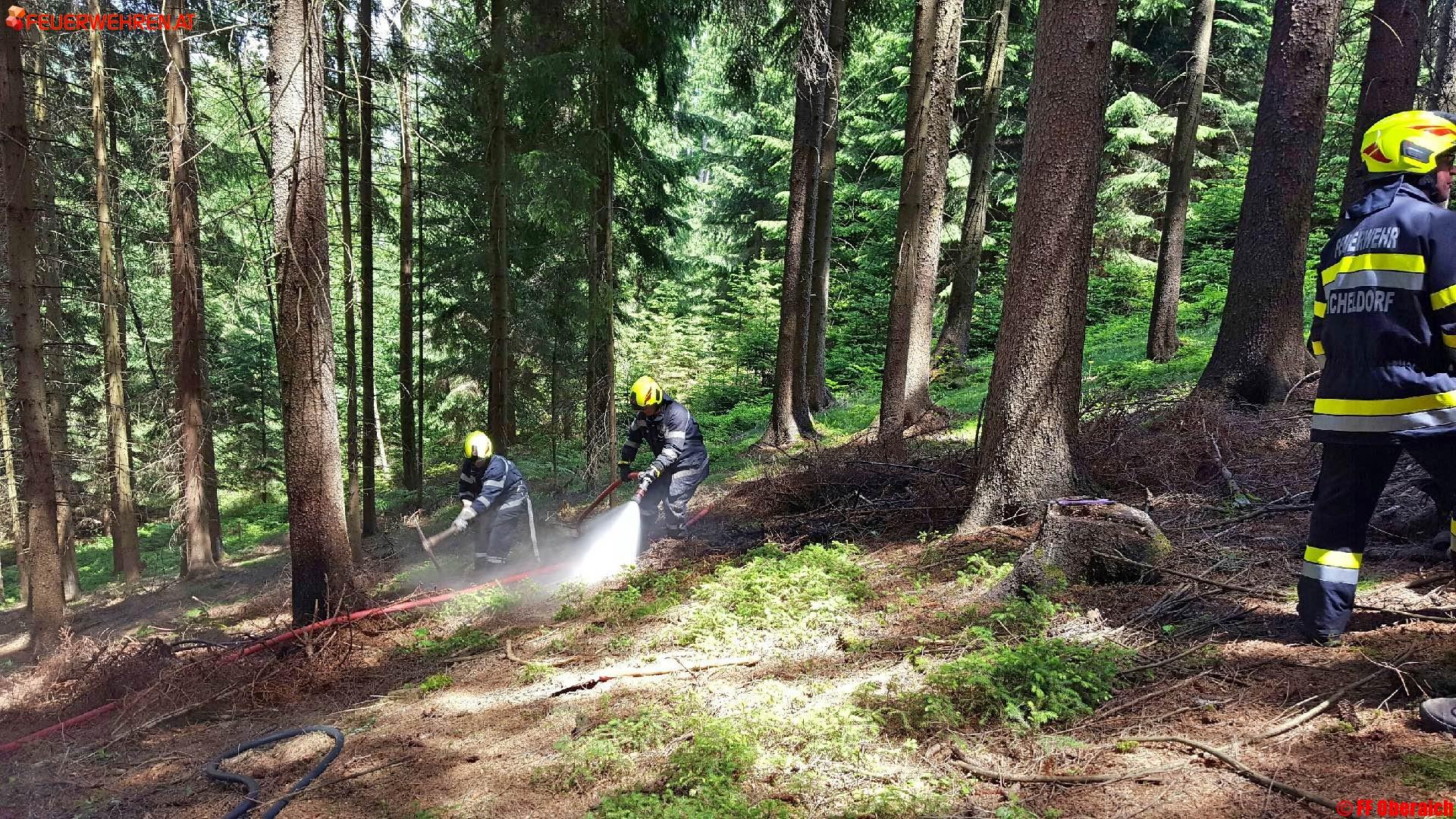 Am Einsatzort angekommen fand der Einsatzleiter BM Manuel Razloznik einen kleineren Waldbrand vor. Die Zufahrt für die Einsatzfahrzeuge gestaltete sich sehr schwierig. Mittels Hochdruckrohr wurde sofort mit dem Löscheinsatz begonnen, auch der 60 Meter Schlauch musste verlängert werden.