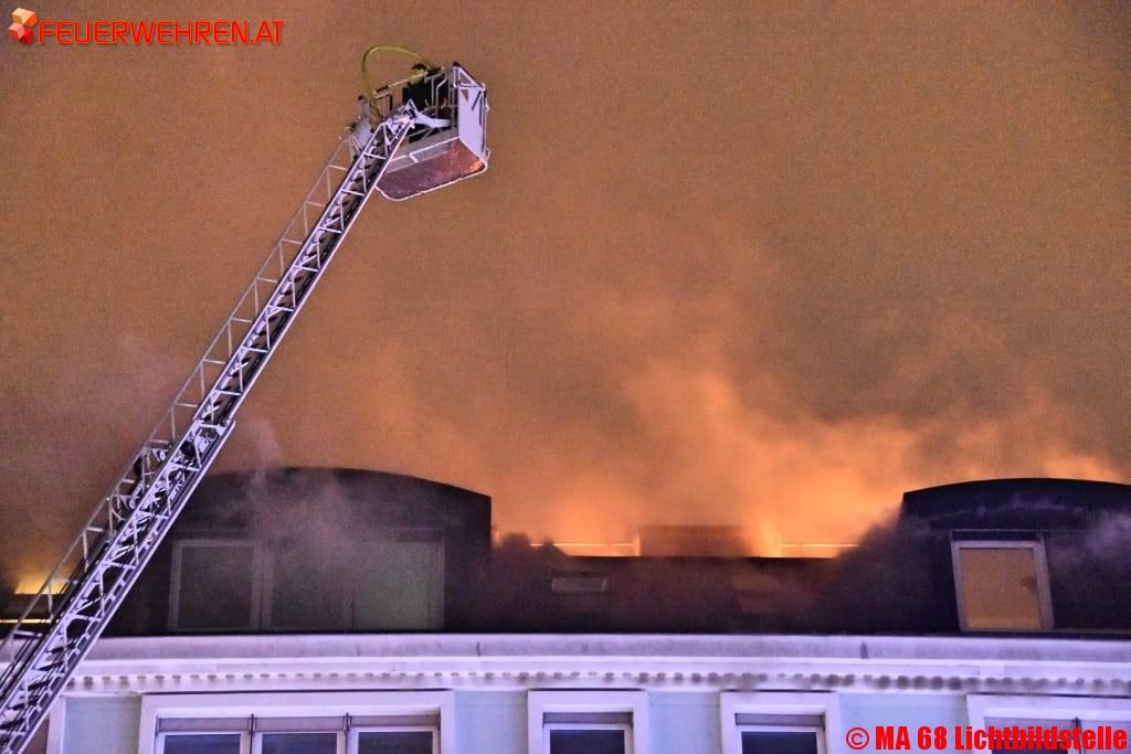 Heute Abend kam es aus unbekannter Ursache zu einem ausgedehnten Dachbrand eines mehrstöckigen Hauses in Wien-Favoriten. Zahlreiche Notrufe langten unter 122 ein und als die ersten Feuerwehrleute an der Einsatzstelle eintrafen, standen bereits große Teile des ausgebauten Dachgeschoßes in Brand.