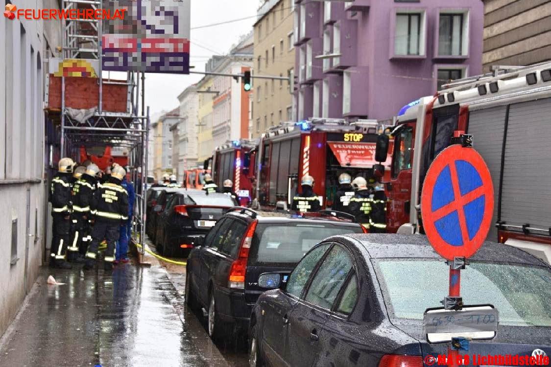 Zwei Bauarbeiter wurden an die Berufsrettung Wien übergeben. Die Brandursache ist Gegenstand von Ermittlungen.