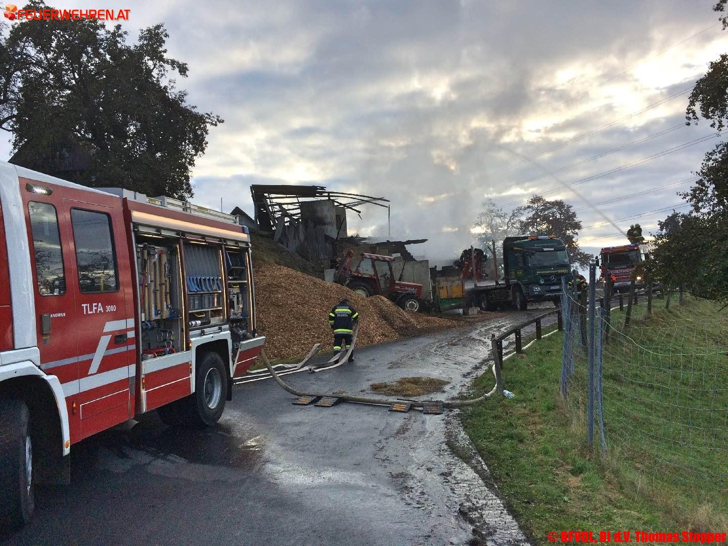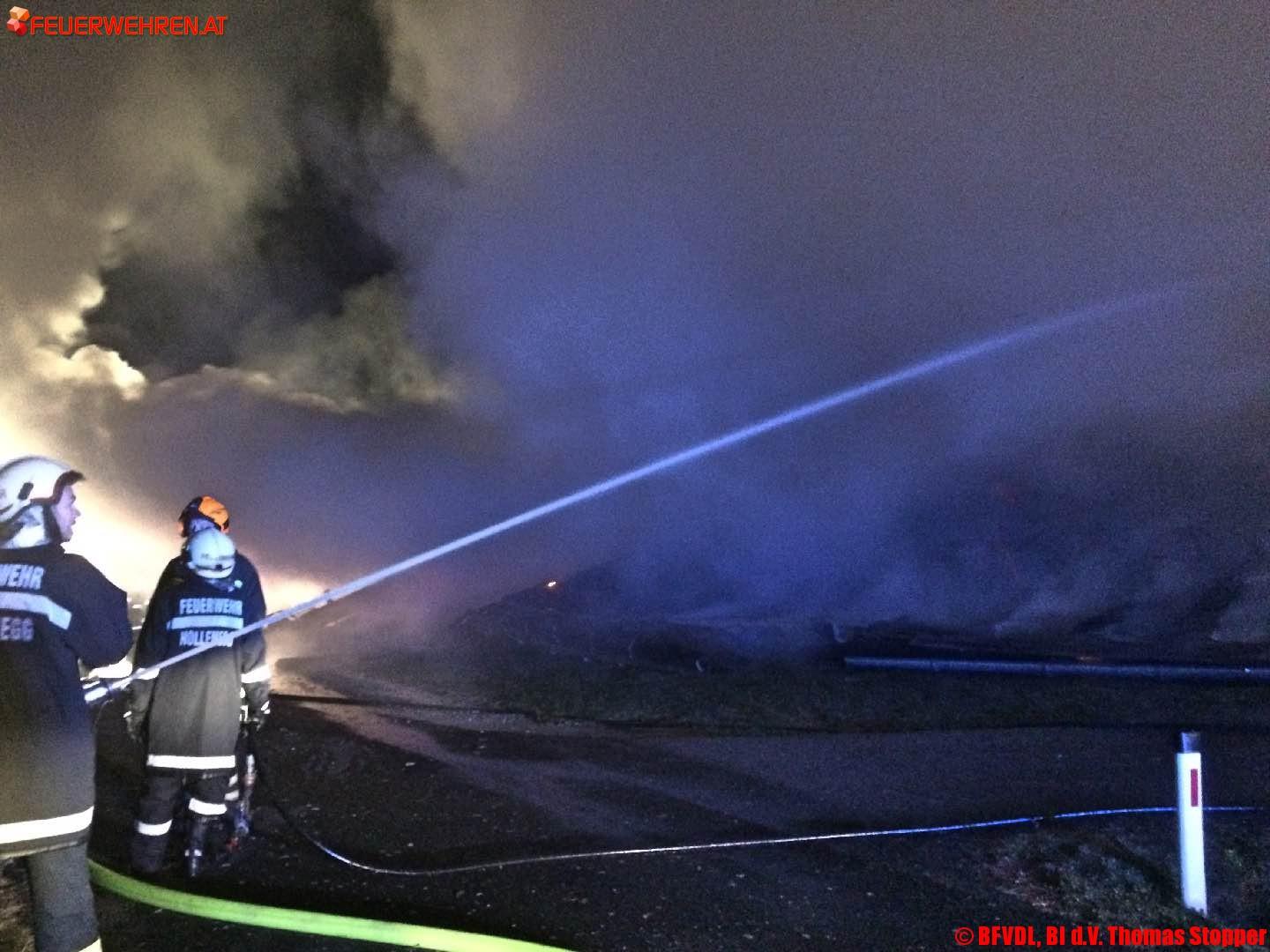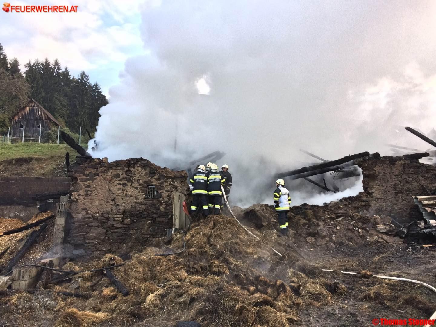 Beim Eintreffen der ersteintreffenden Feuerwehr Hollenegg stand das Wirtschaftsgebäude bereits in Vollbrand.