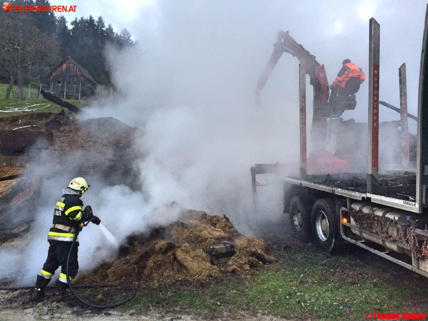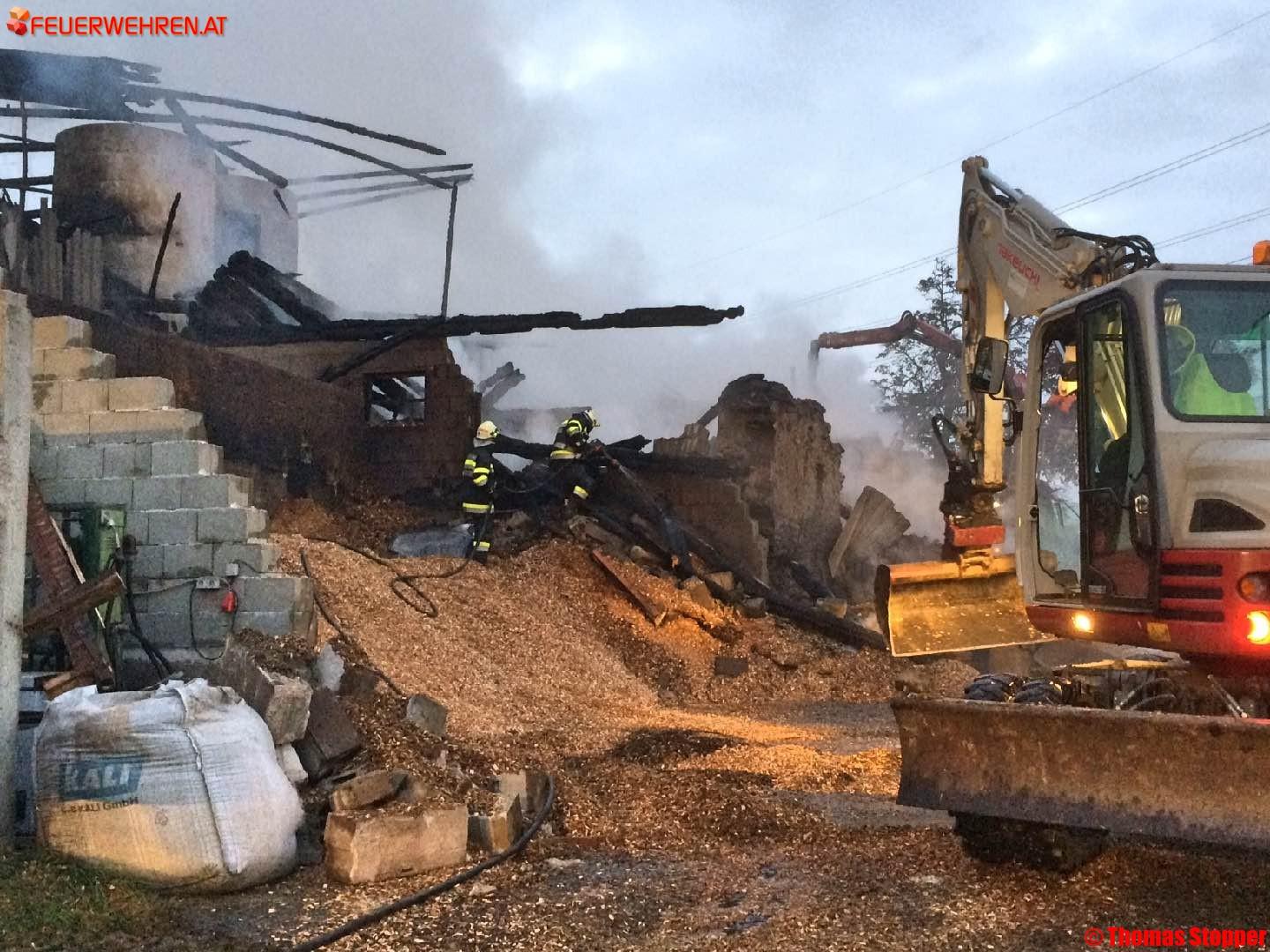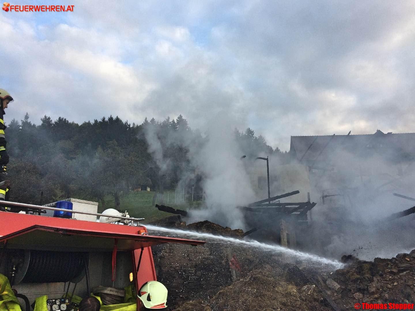 Beim Eintreffen der ersteintreffenden Feuerwehr Hollenegg stand das Wirtschaftsgebäude bereits in Vollbrand.