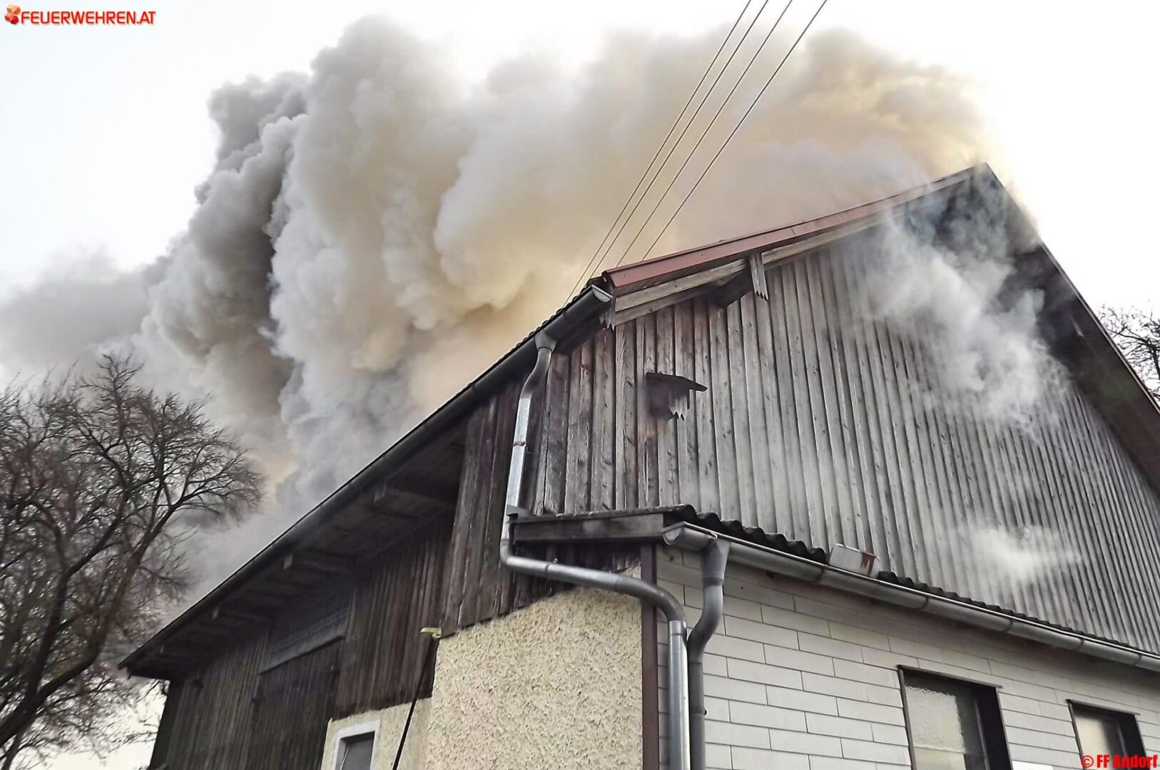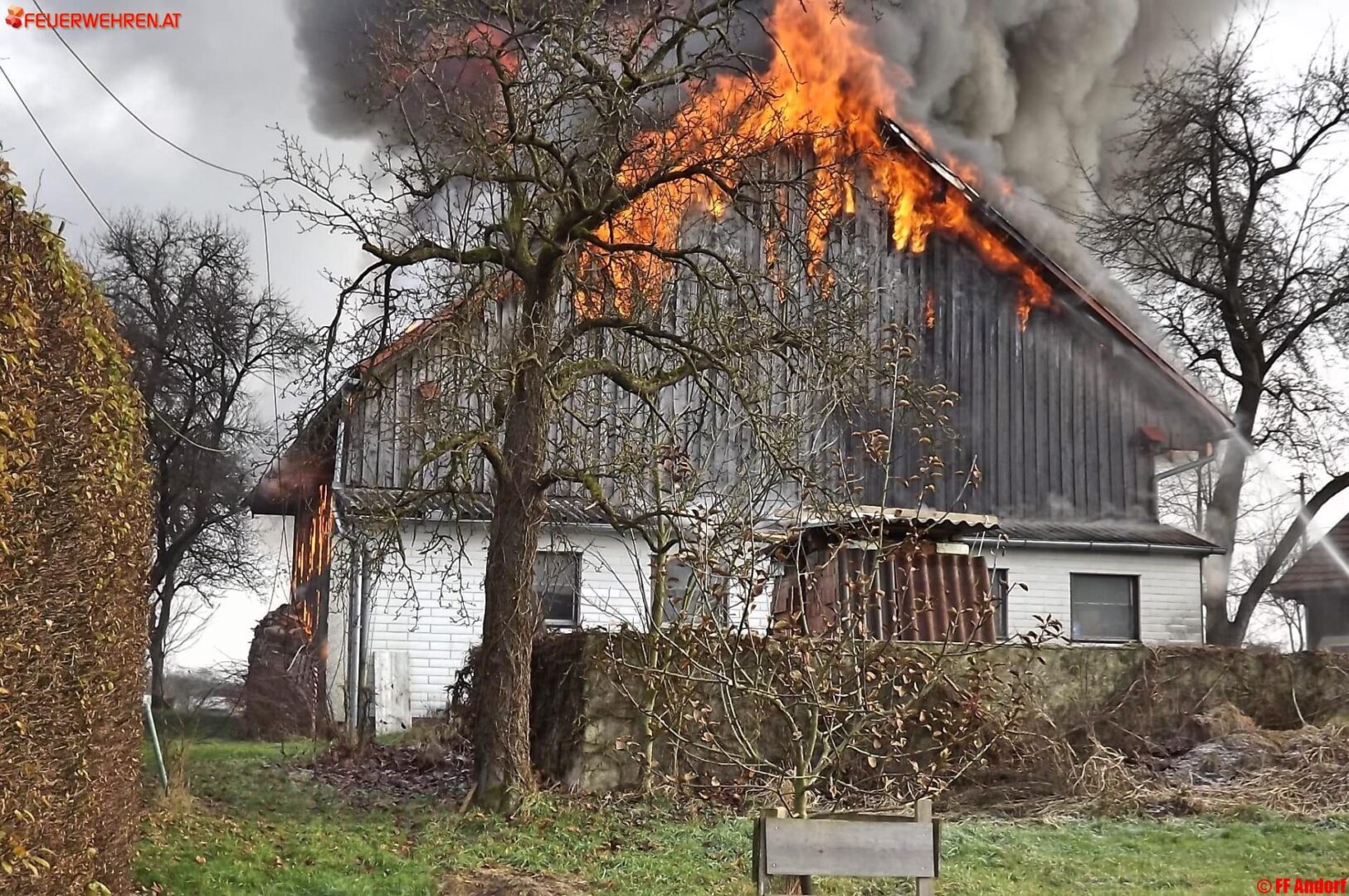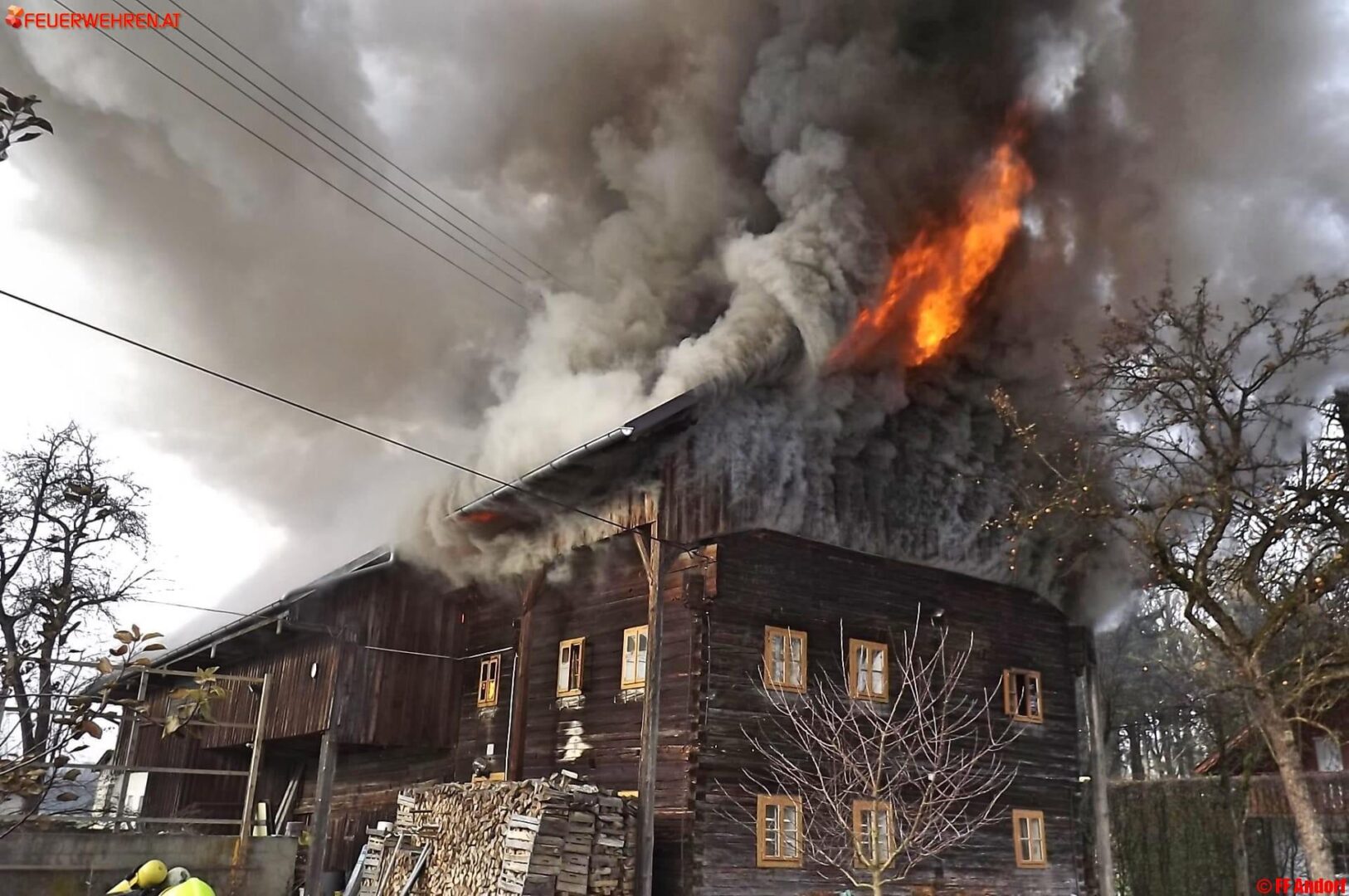 Aus bislang unbekannter Ursache geriet heute kurz nach Mittag ein Wohnhaus in der Ortschaft Teuflau (Gemeinde Andorf) in Brand. Beim Eintreffen der ersten Einsatzkräfte stand das gesamte Objekt bereits in Vollbrand und wurde deshalb sofort Alarmstufe 2 ausgelöst. Kurz darauf standen 10 Feuerwehren mit etwa 150 Einsatzkräften am Brandort um die Flammen zu bekämpfen und ein Übergreifen auf die Nachbarobjekte zu verhindern.