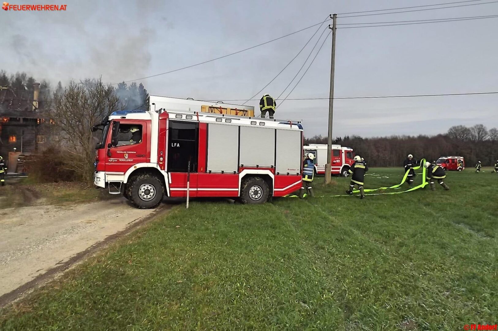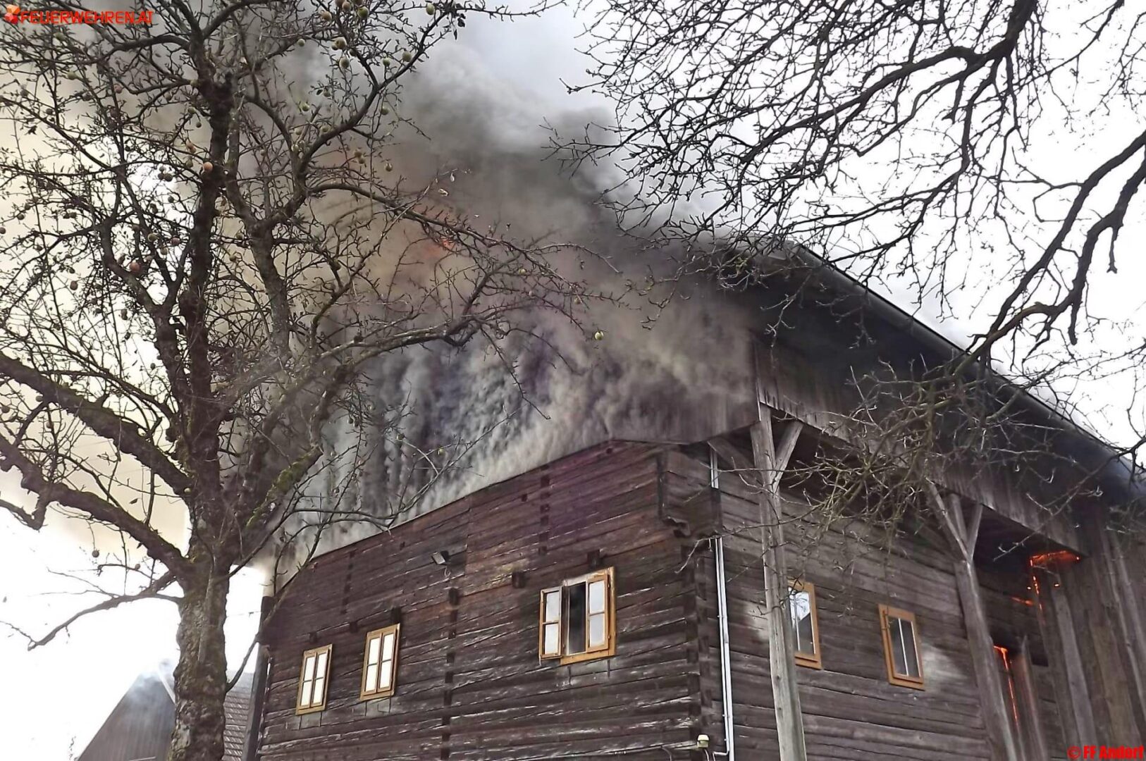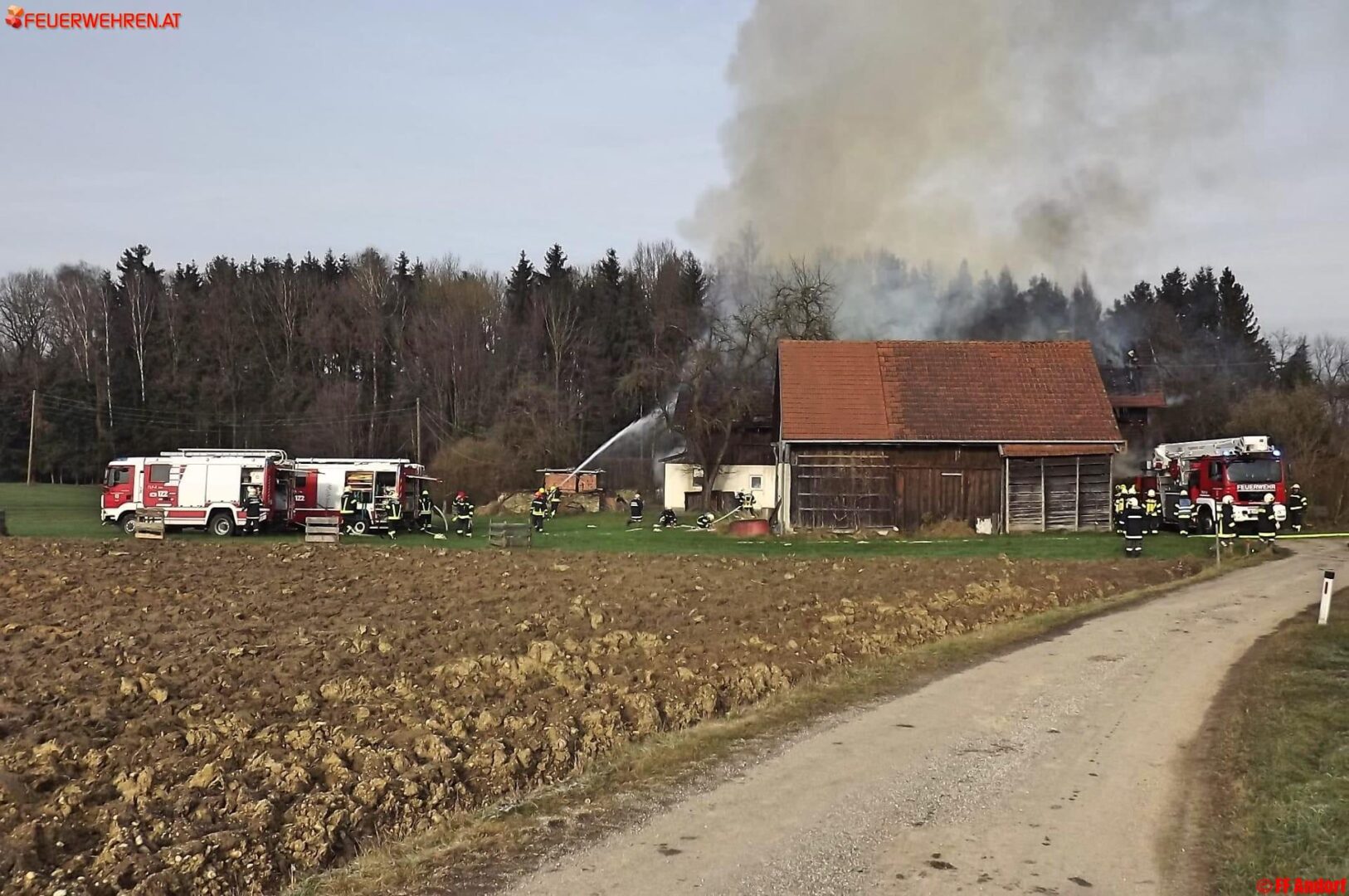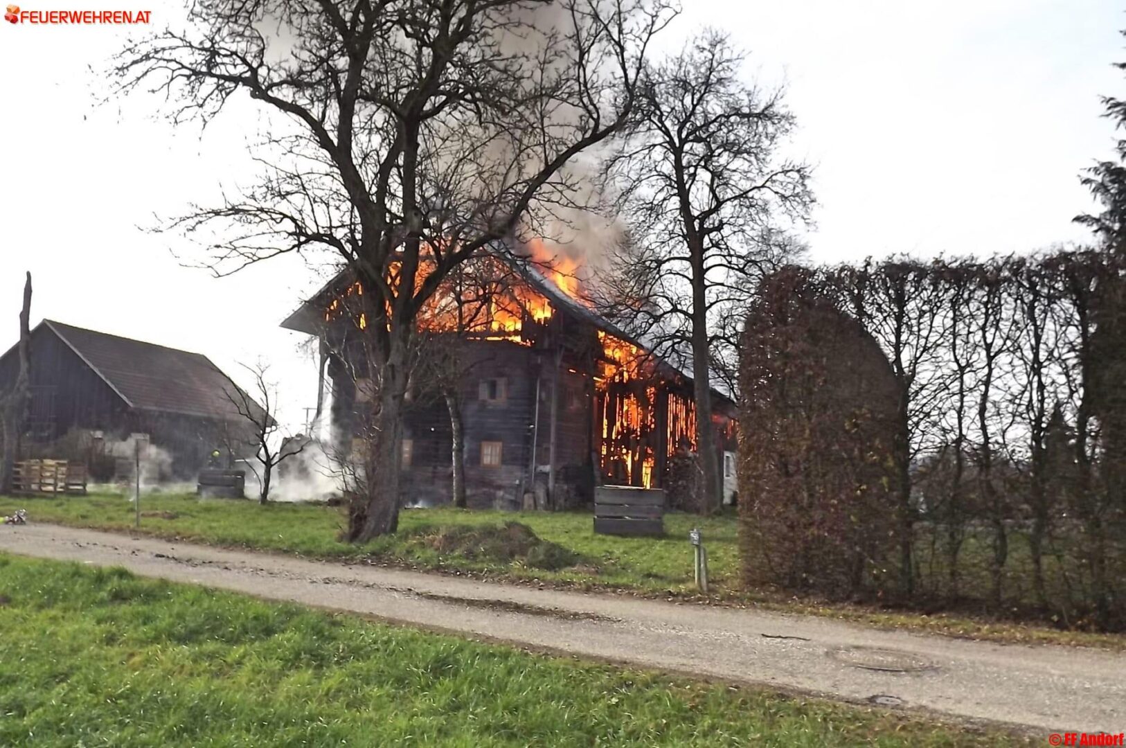 Aus bislang unbekannter Ursache geriet heute kurz nach Mittag ein Wohnhaus in der Ortschaft Teuflau (Gemeinde Andorf) in Brand. Beim Eintreffen der ersten Einsatzkräfte stand das gesamte Objekt bereits in Vollbrand und wurde deshalb sofort Alarmstufe 2 ausgelöst. Kurz darauf standen 10 Feuerwehren mit etwa 150 Einsatzkräften am Brandort um die Flammen zu bekämpfen und ein Übergreifen auf die Nachbarobjekte zu verhindern.