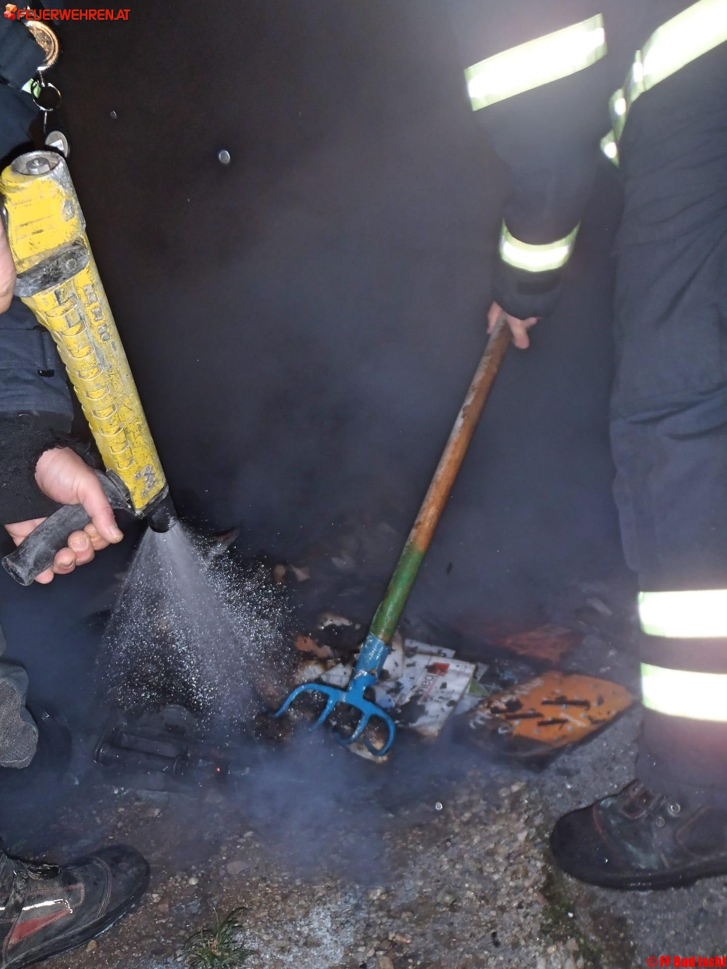 Mittels eines Hochdruckstrahlrohres konnte die Mannschaft von „Tank Bad Ischl“ den Brand löschen. Nach einer Kontrolle des Brandbereiches mittels Wärmebildkamera konnte man wieder in die Zeugstätten einrücken.