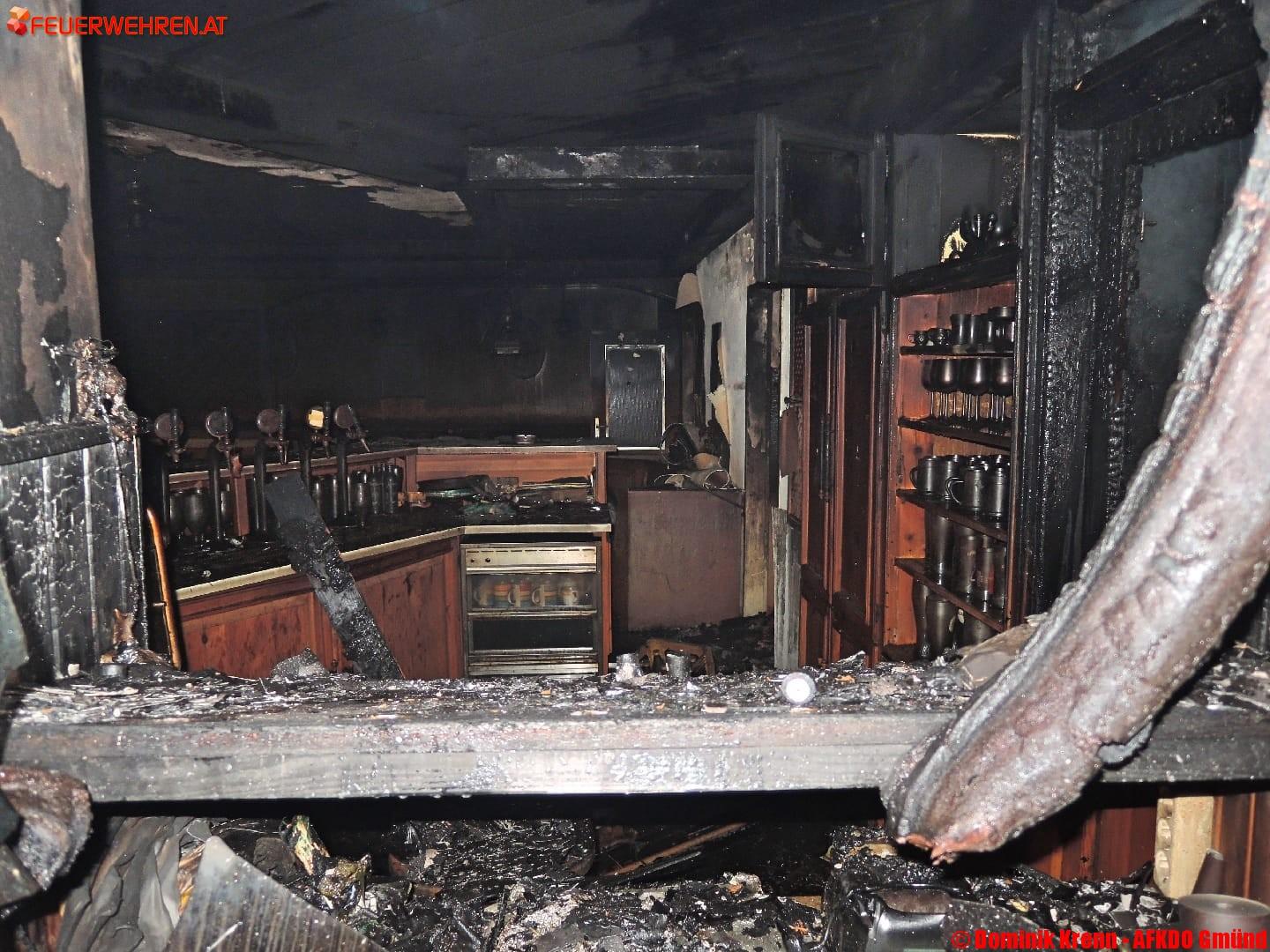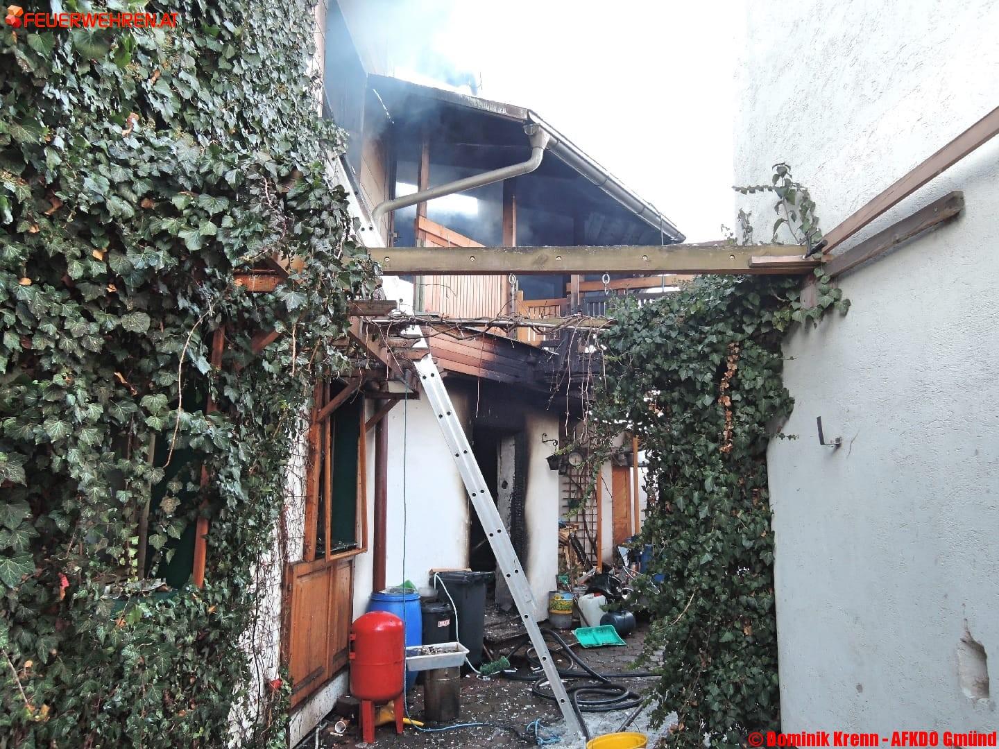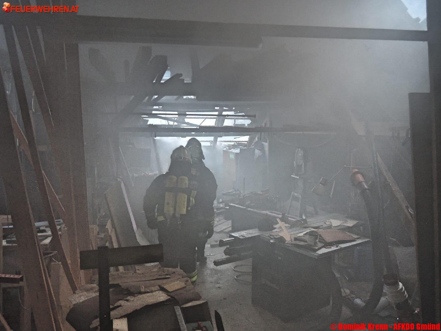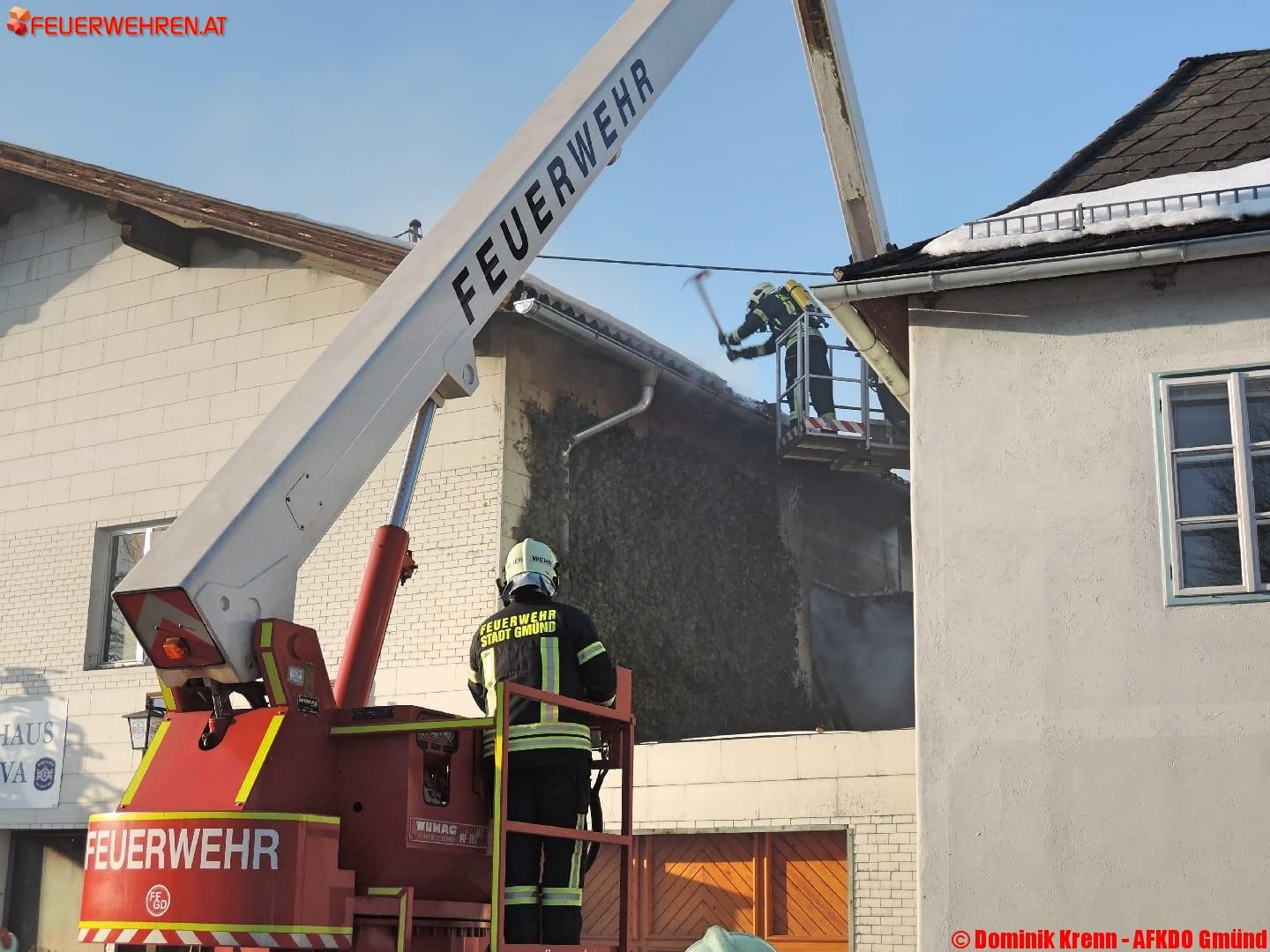 Um in das Obergeschoß des total zerstörten Hauses vordringen zu können wurde die Drehleiter der Freiwilligen Feuerwehr der Stadt Schrems eingesetzt. Ein Zugang über das Treppenhaus war nicht mehr möglich. Außerdem wurde in der Erstphase der Dachstuhlbrand im hinteren Teil des ehemaligen Gasthauses vorgenommen. Die Freiwillige Feuerwehr der Stadt Gmünd stellte ihre Telemast-Bühne zur Verfügung um das Dach nach versteckten Glutnestern zu untersuchen.
