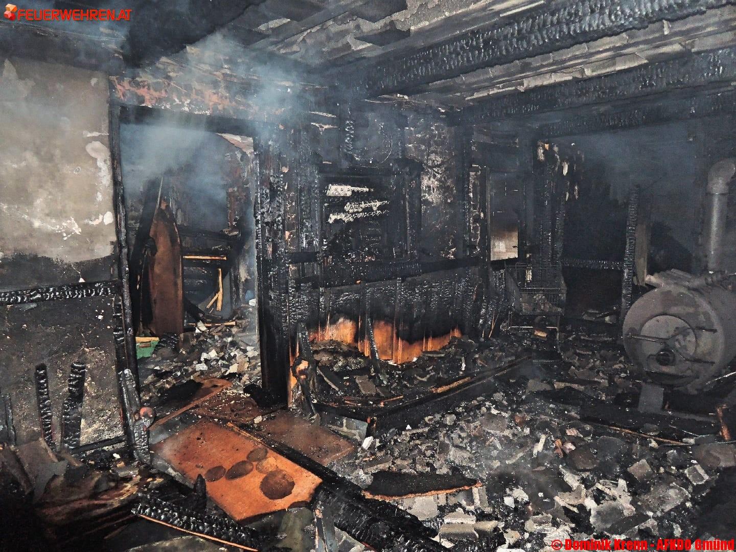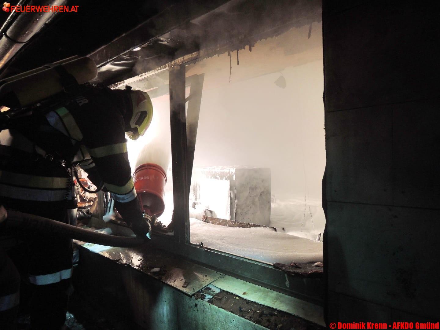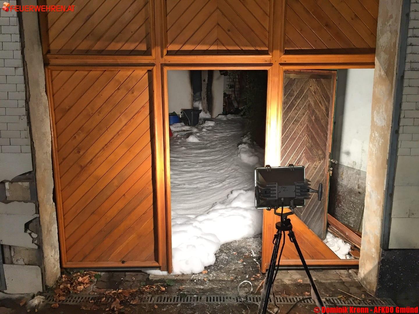 Erst durch das Fluten des Erdgeschosses mit Löschschaum konnten die letzten Glutnester abgelöscht werden. Im hinteren Bereich des Hauses wurde das Löschmittel durch ein Fenster und über das zerstörte Dach eingebracht und somit das gesamte Erdgeschoss rund einen halben Meter hoch mit Schaum eingedeckt. Die örtlich zuständige Feuerwehr Heidenreichstein stellte noch bis in die Morgenstunden des nächsten Tages eine Brandwache.