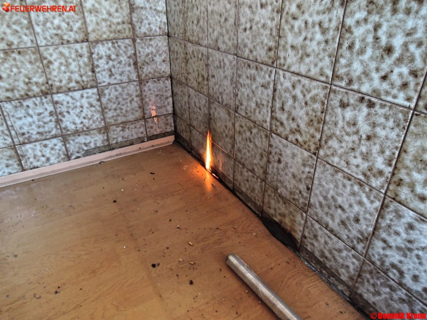 Großbrand in ehemaliger Baracke konnte verhindert werden; Nach Entfernen von Möbelstücken und Bodenleiste werden Flammen sichtbar