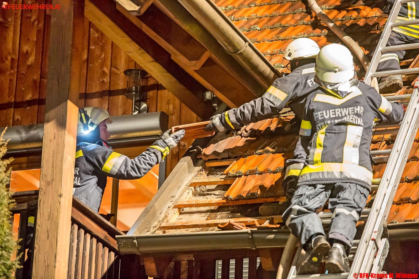 Während der Anfahrt war unklar, ob sich Personen im brennenden Gebäude befinden. Glücklicherweise waren die Bewohner nicht mehr im Haus. Der Brand war im Firstbereich des Dachstuhles durchgebrochen und konnte relativ rasch gelöscht werden. Um alle Glutnester aufzuspüren war es erforderlich die Dachhaut zu öffnen, um diese gezielt ablöschen zu können.