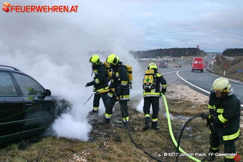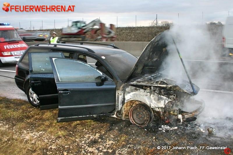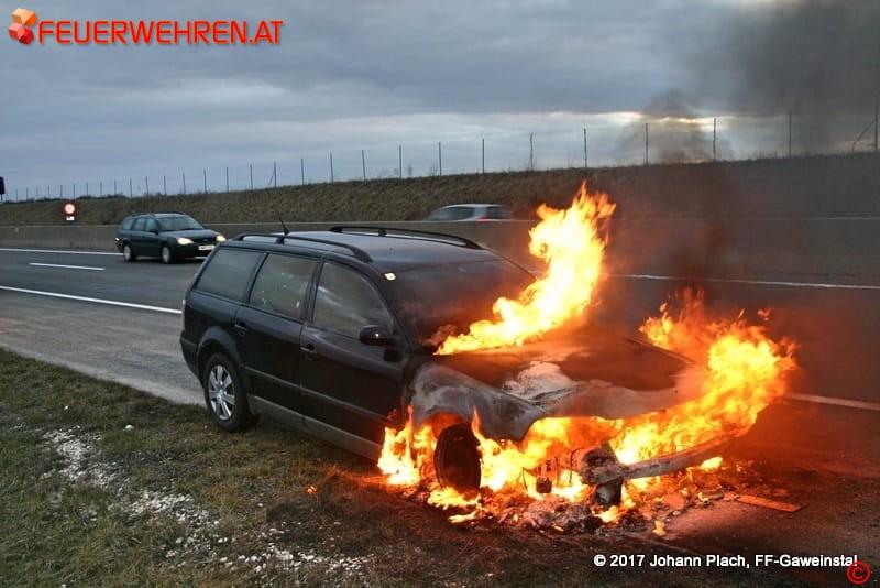 Am Montagmorgen, um 5:52 Uhr wurden die Feuerwehren Gaweinstal und Schrick per Sirene zu einem Fahrzeugbrand auf die A5-Nordautobahn alarmiert. In Fahrtrichtung Wien begann ein Pkw aus unbekannter Ursache zu Brennen.