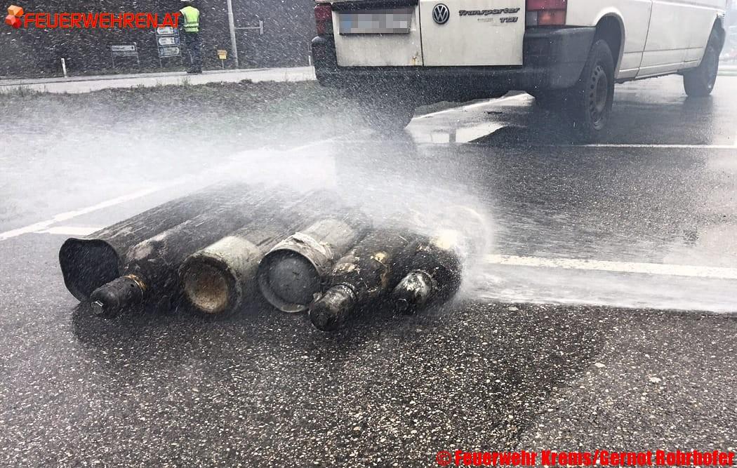 „Beim Eintreffen am Einsatzort waren bereits einige Scheiben geborsten. Das Gebäude stand in Vollbrand und die Flammen hatten sich teilweise schon auf den hinteren Teil des Lokals ausgebreitet“, berichtet der Kommandant der Freiwilligen Feuerwehr Krems, Gerhard Urschler. Mehrere Atemschutztrupps nahmen einen Innenangriff im Küchenbereich vor, während aus dem Schankbereich CO2-Flaschen ins Freie gebracht und dort abgekühlt wurden. „Die Flaschen sind direkt in den Flammen gestanden. Durch die Erwärmung hätte zu einem Zerknallen kommen können. Das konnte aber verhindert werden.“