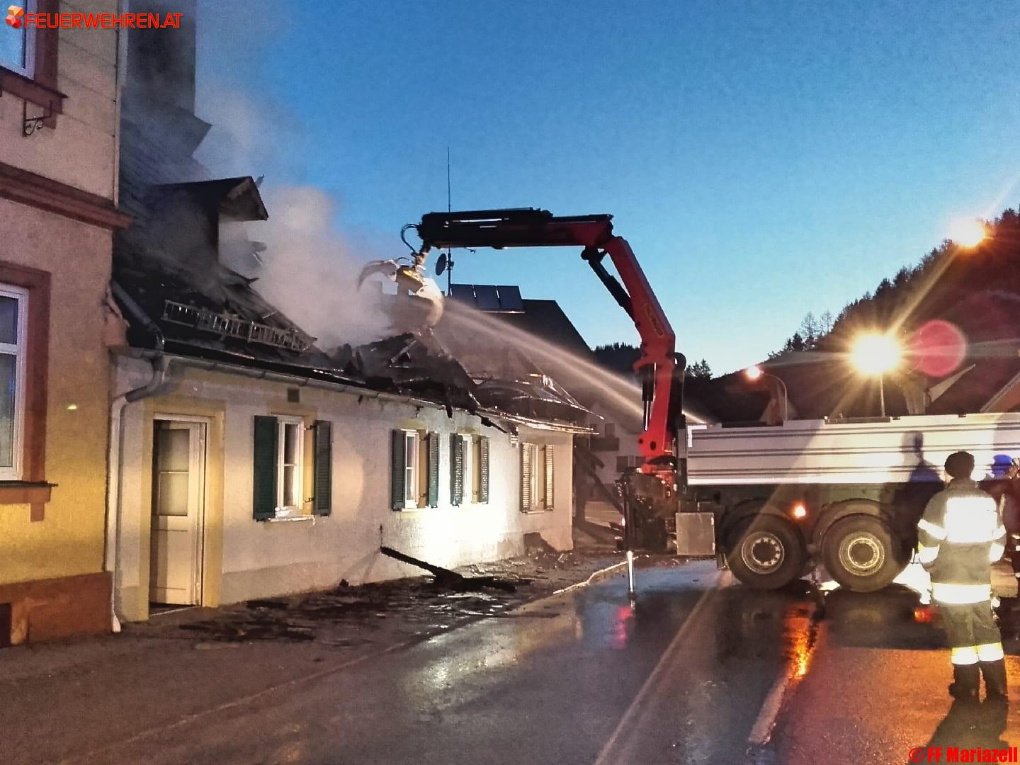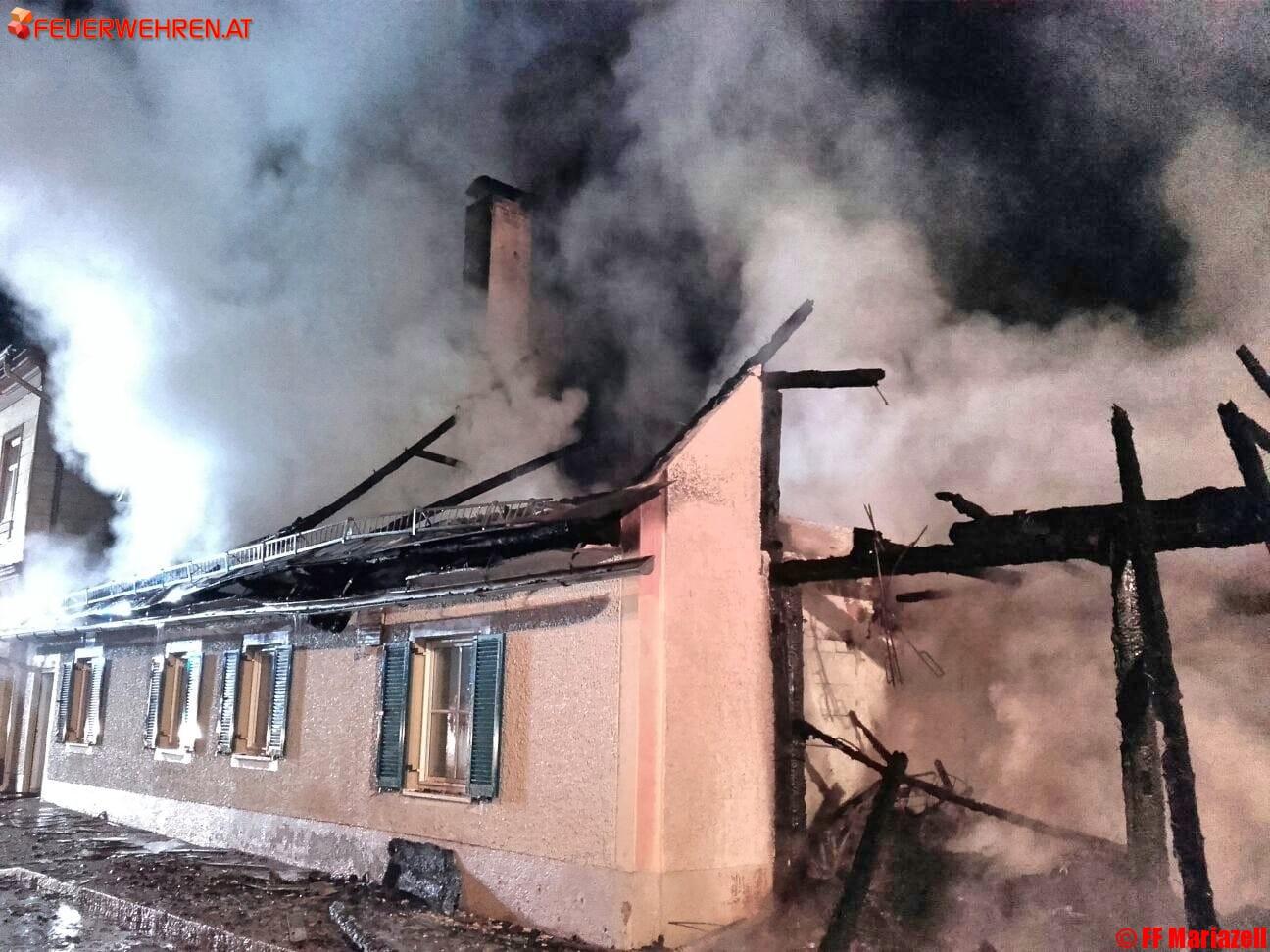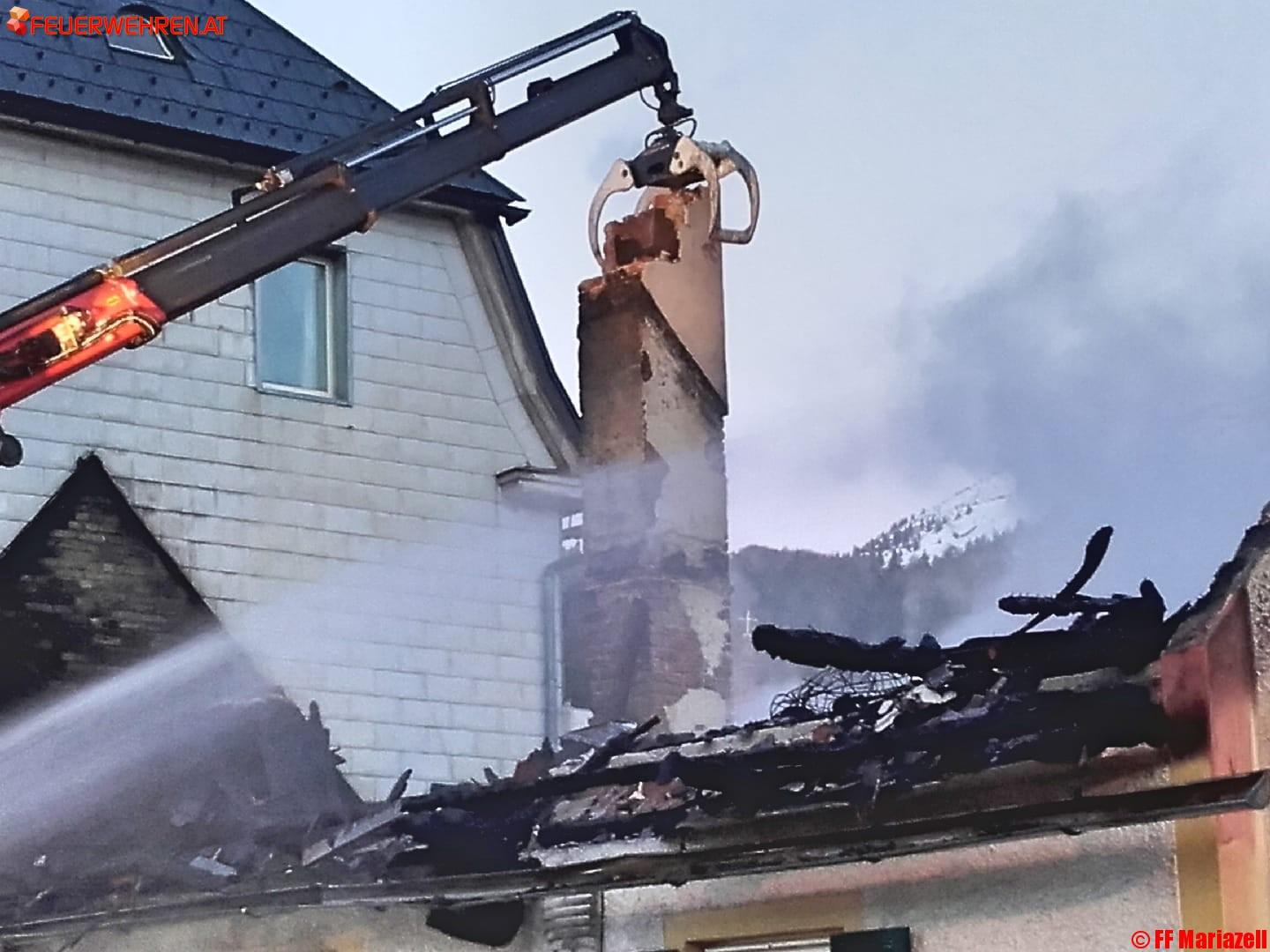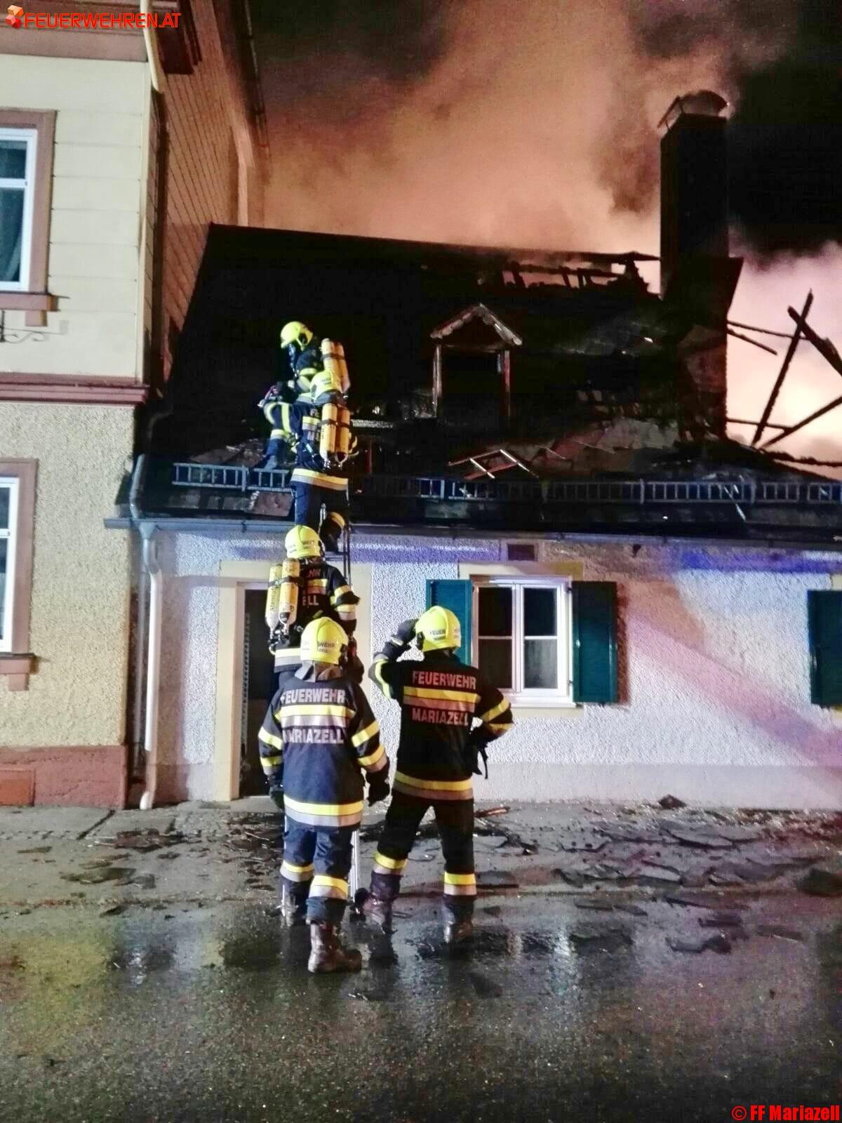 Das angebaute Nebenobjekt und der Dachstuhl der Bäckerei brannten völlig ab, Der Rest des Dachstuhles und der Kamin mussten aufgrund der Gefahrenlage abgetragen werden. Die Bundesstraße (B20) musste während des Einsatzes völlig gesperrt werden. Um 7.30 Uhr konnte sich die FF Mariazell wieder einsatzbereit melden, wie immer hat die Zusammenarbeit mit den niederösterreichischen Nachbarwehren bestens funktioniert. Die Brandursache ist vorläufig unbekannt.