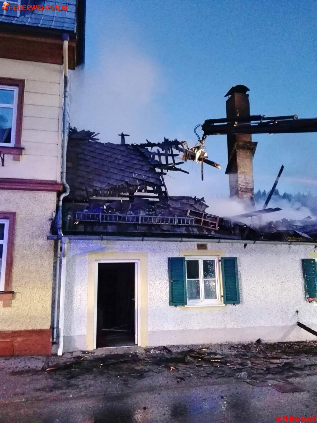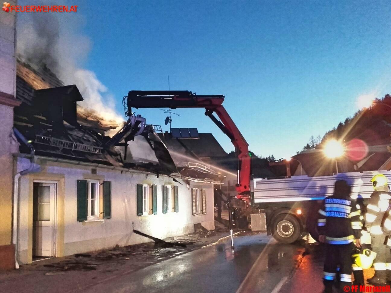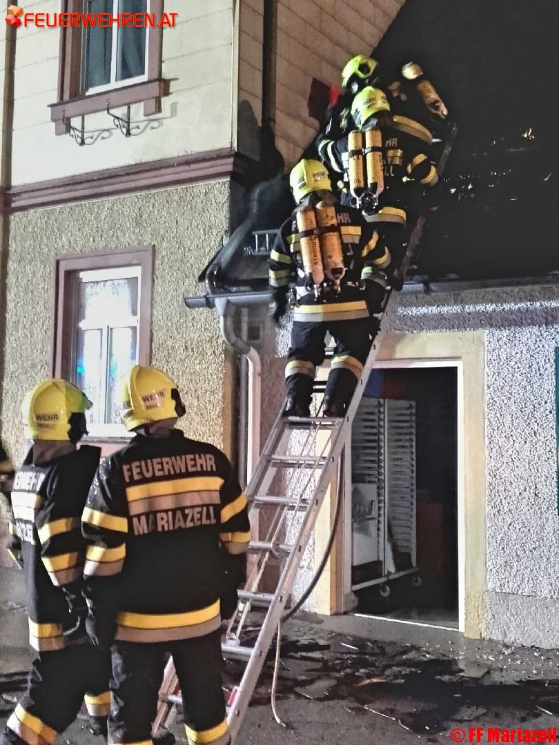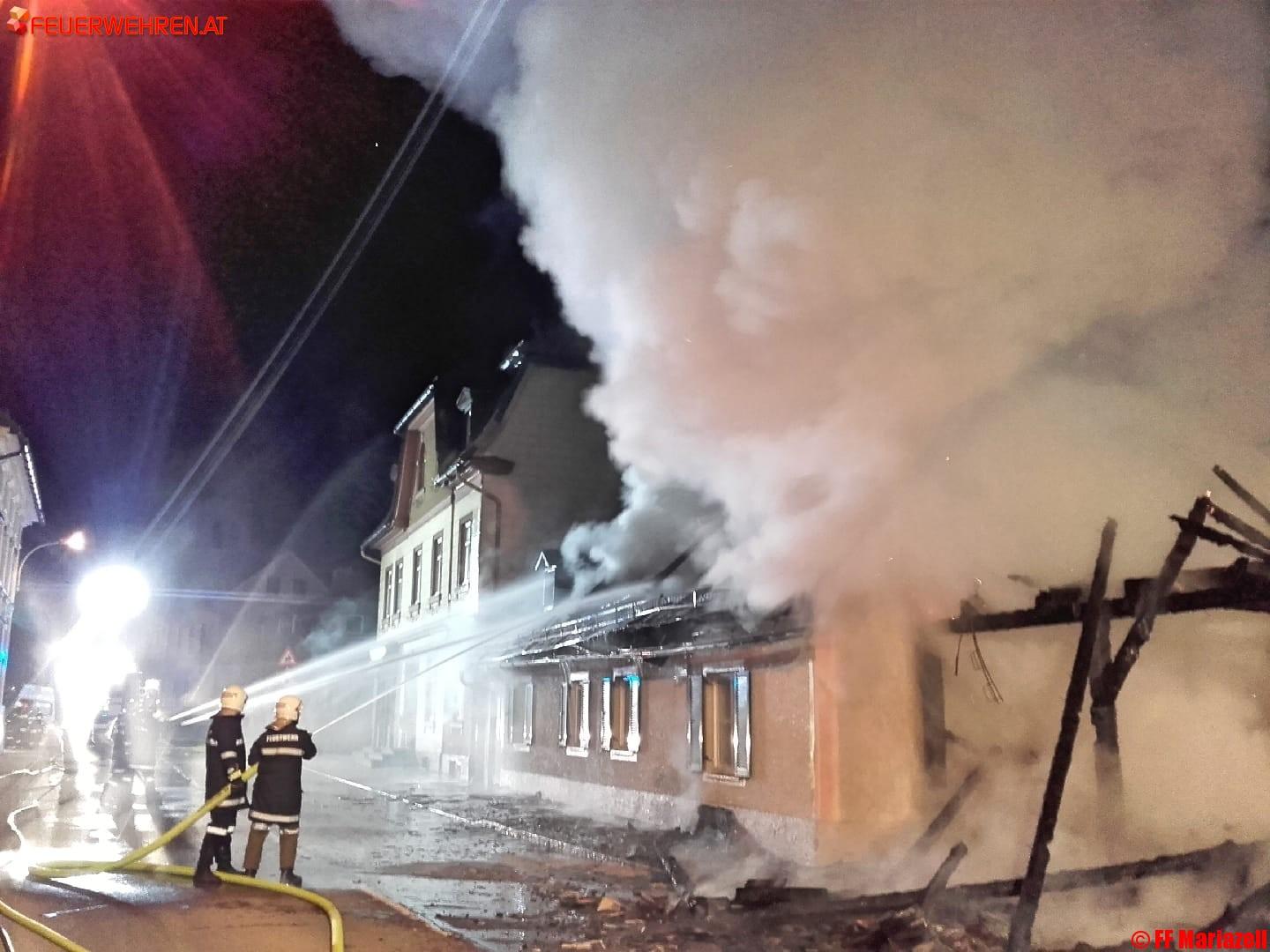 Das angebaute Nebenobjekt und der Dachstuhl der Bäckerei brannten völlig ab, Der Rest des Dachstuhles und der Kamin mussten aufgrund der Gefahrenlage abgetragen werden. Die Bundesstraße (B20) musste während des Einsatzes völlig gesperrt werden. Um 7.30 Uhr konnte sich die FF Mariazell wieder einsatzbereit melden, wie immer hat die Zusammenarbeit mit den niederösterreichischen Nachbarwehren bestens funktioniert. Die Brandursache ist vorläufig unbekannt.