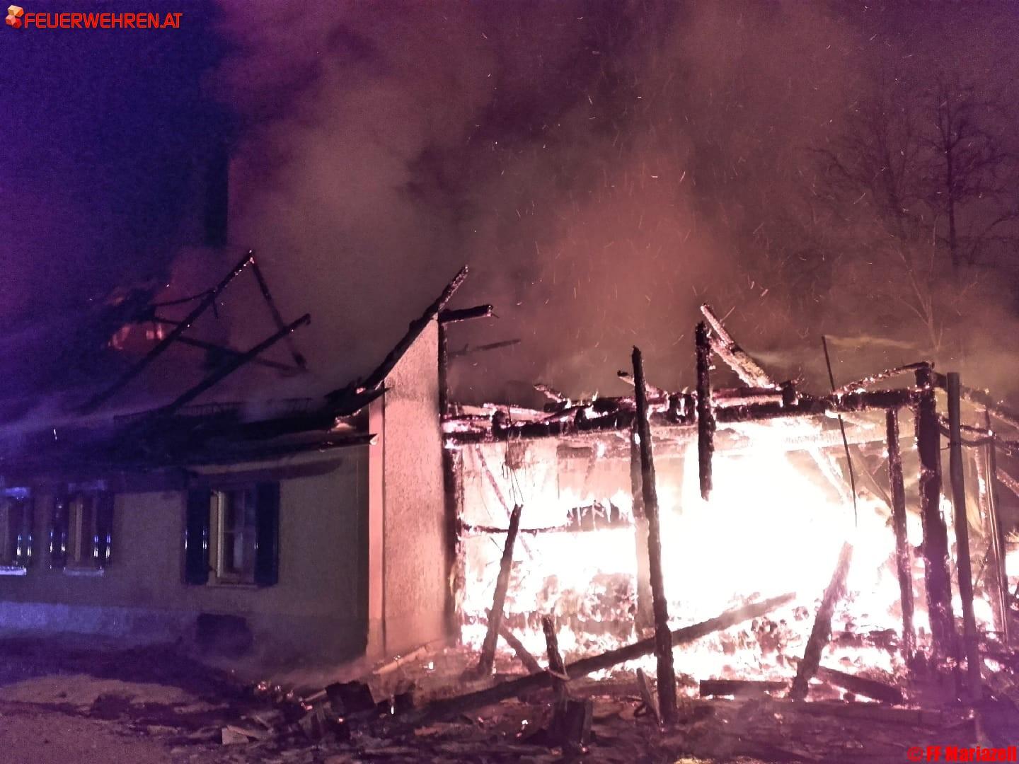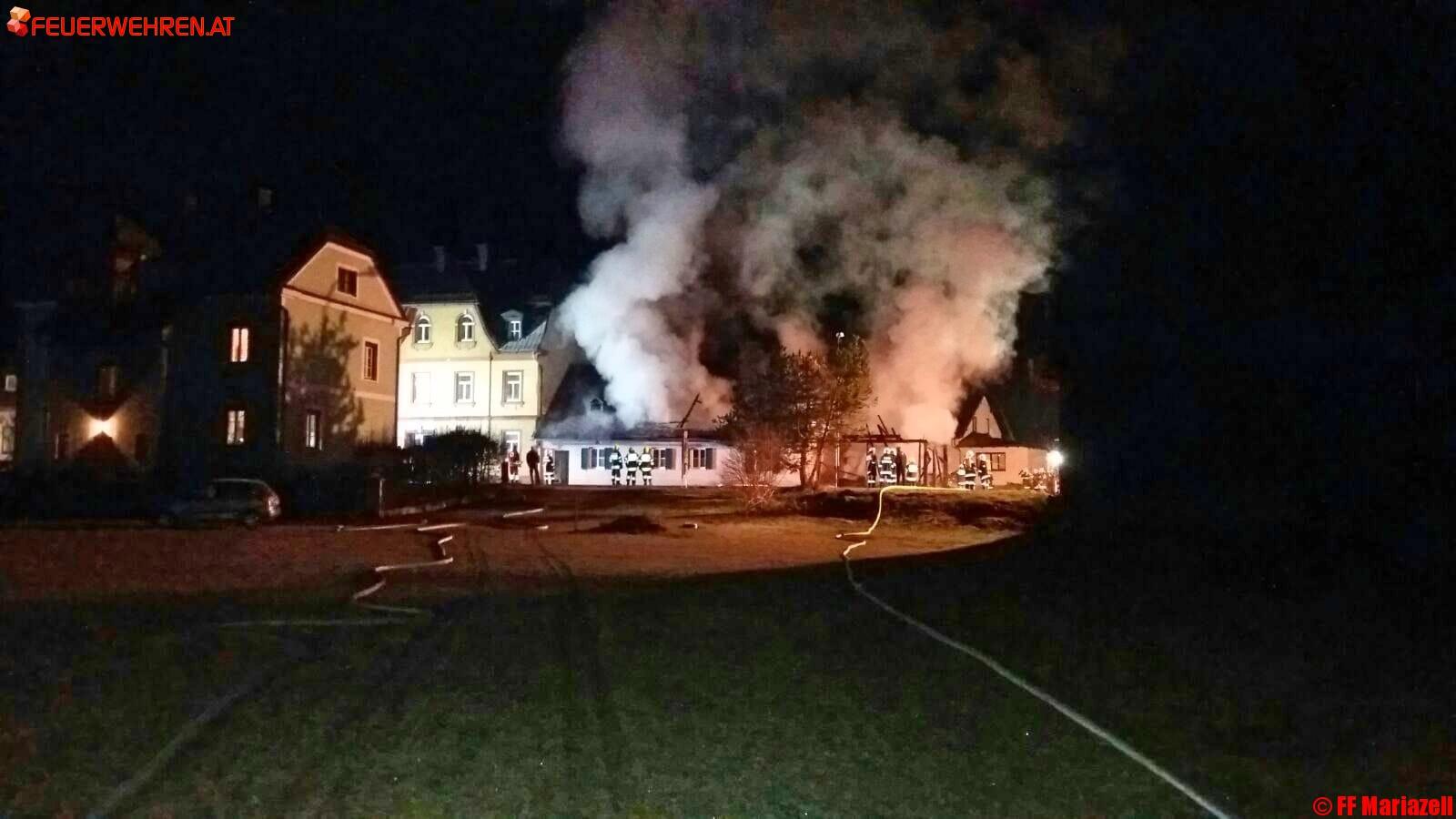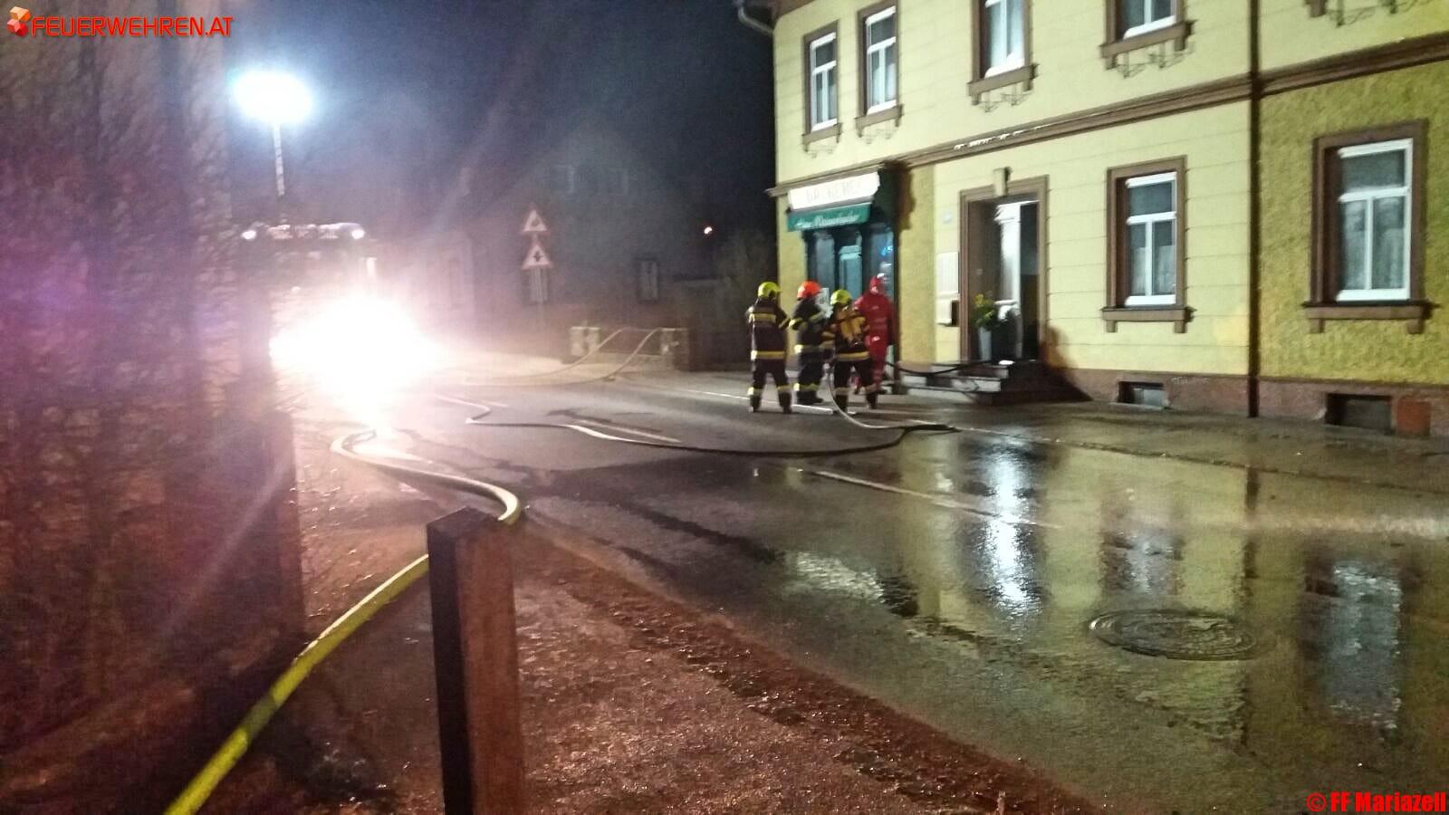 Um 3.44 Uhr am Dienstag, den 28. März wurde die FF Mariazell zur Unterstützung der FF Mitterbach am Erlaufsee zu einem Gebäudebrand im Ortszentrum von Mitterbach alarmiert. Brandobjekt war eine Bäckerei samt angebautem Nebenobjekt, die beim Eintreffen der Feuerwehr bereits in Vollbrand standen. Zum Glück wurden keine Personen verletzt. Ein Hund bemerkte das Feuer und warnte die Besitzer, die sich noch rechtzeitig aus ihrem Wohnhaus retten können.