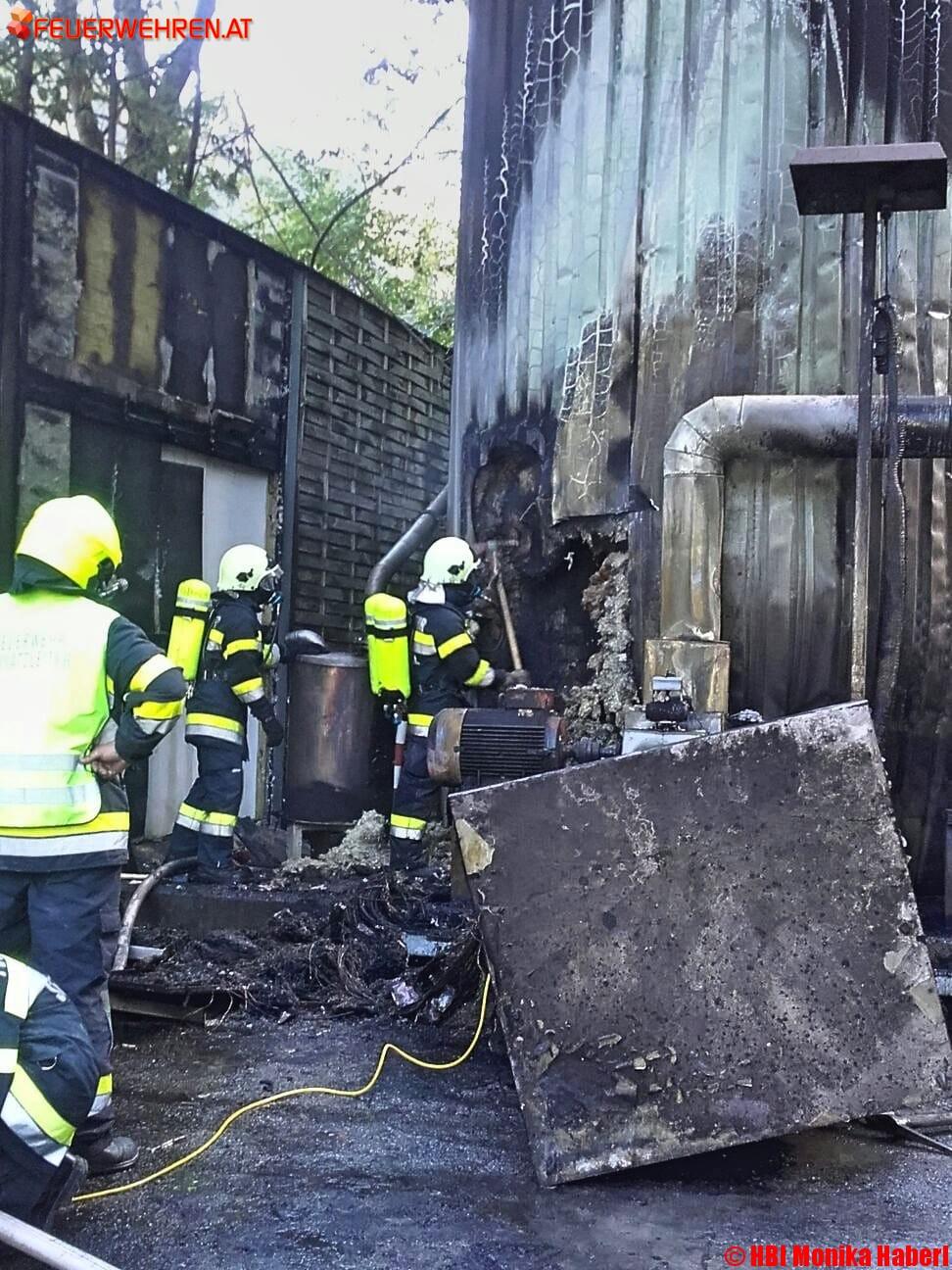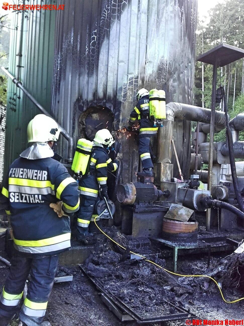 Die Löscharbeiten waren sehr aufwändig, da durch die starke Rauchentwicklung an der Anlage ein Löschangriff nur unter schwerem Atemschutz möglich war. Um zum Brandherd in der Maschine vordringen zu können, mussten sich die Einsatzkräfte außerdem erst mittels Winkelschleifer sukzessive vorarbeiten, sprich die Außenhaut des Silos aufschneiden und immer wieder mit der Wärmebildkamera Zwischenmessungen durchführen.