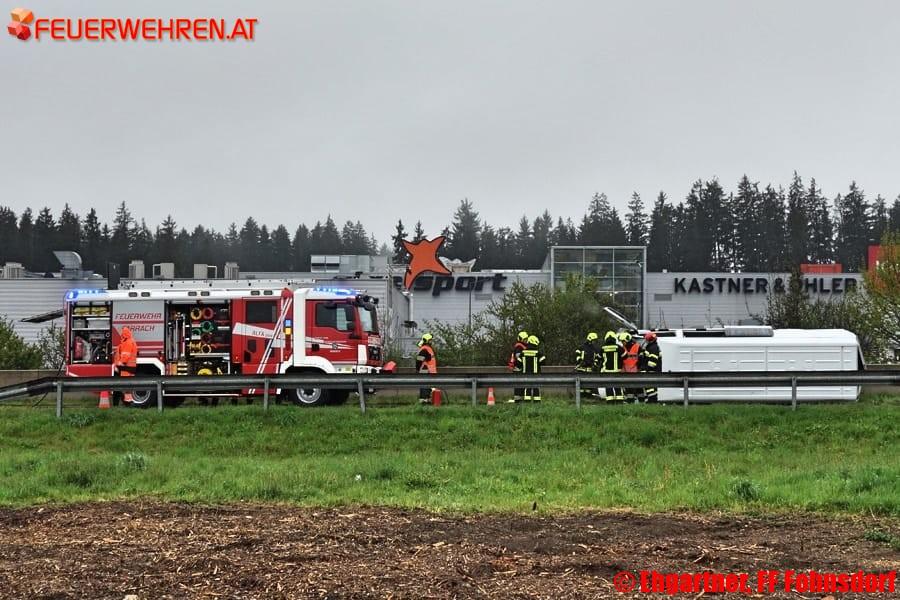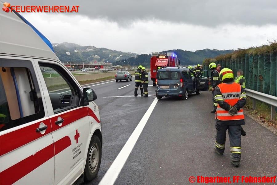Auf Höhe der Autobahnabfahrt Judenburg Ost krachte es zwischen drei Fahrzeugen, wobei ein Kleinbus auf der Seite zu liegen kam.