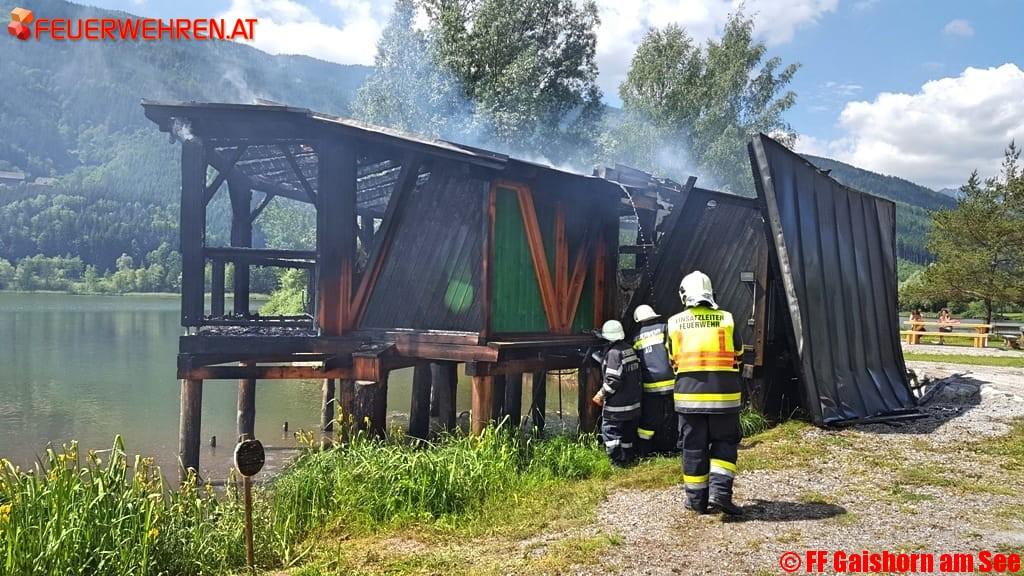 Zum Brand des Seekiosk wurden wir heute um 10:32 Uhr gerufen, mehrere Privatpersonen hatten auf Grund der enormen Brandausbreitung sowie der weit sichtbaren Rauchsäule bereits einen Notruf via 122 abgesetzt. Das RLFA setzte sich umgehend nach Alarmierung in Richtung See in Bewegung, MTFA sowie KLFA folgten in kurzen Abständen.
