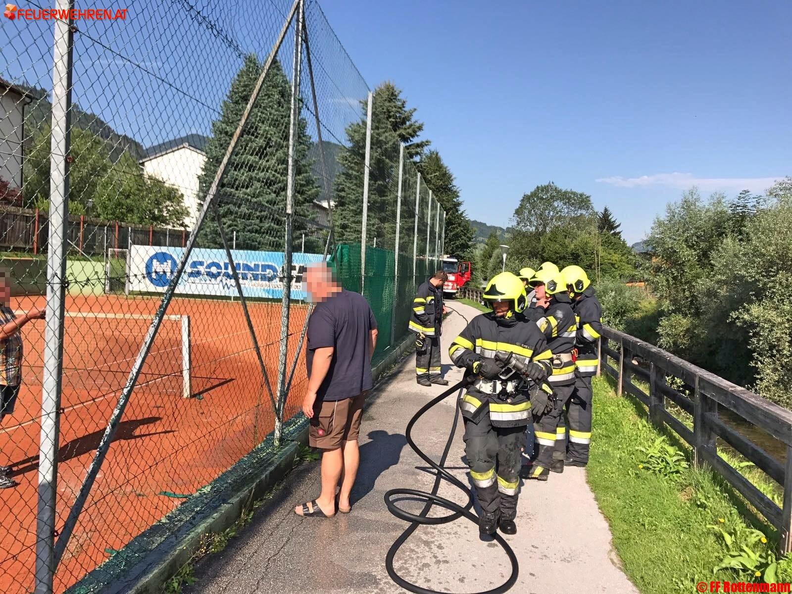 Heute kam es aus noch ungeklärter Ursache zum Brand eines Werbebanners vom Tennisplatz an der Paltenpromenade.