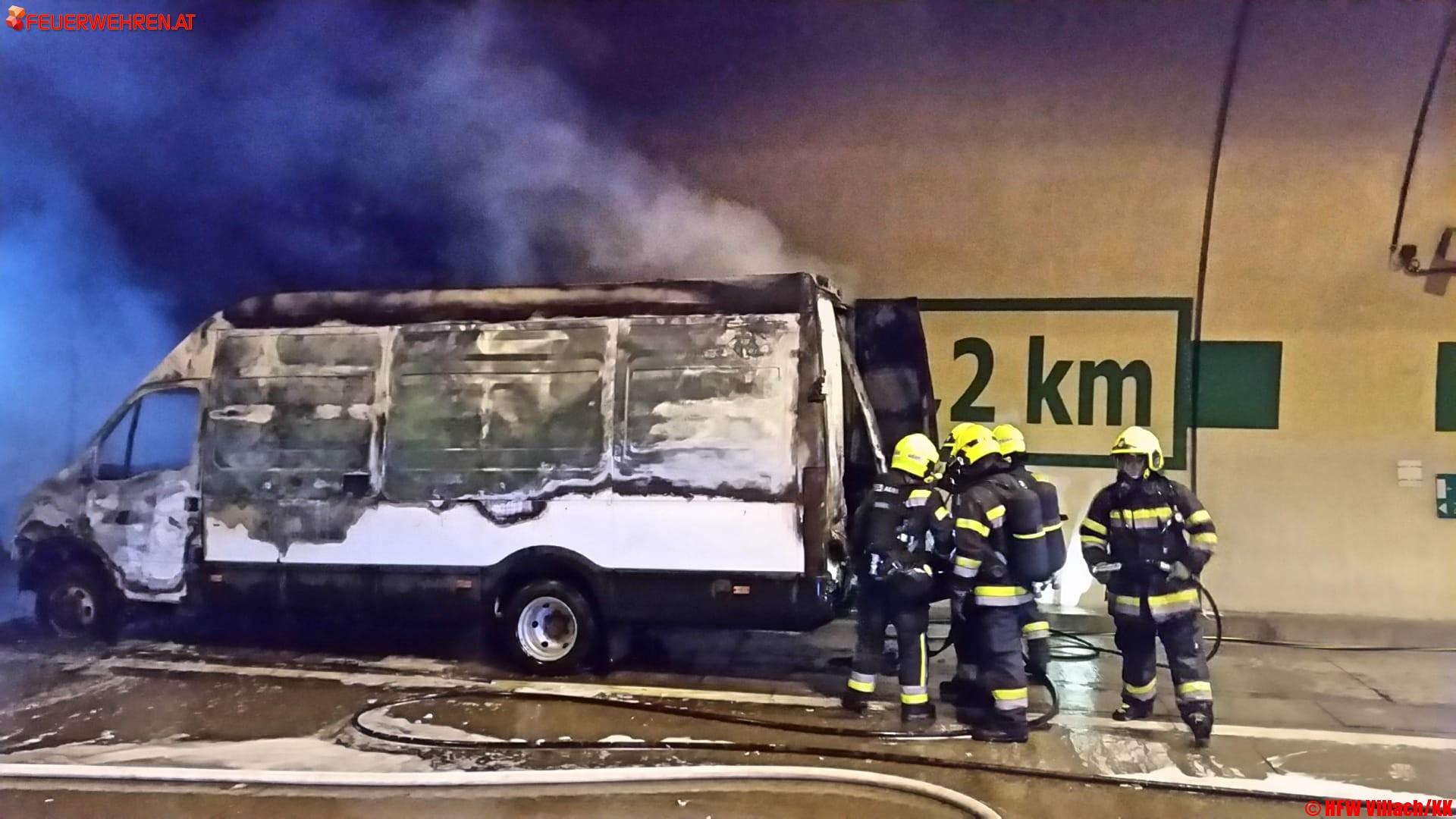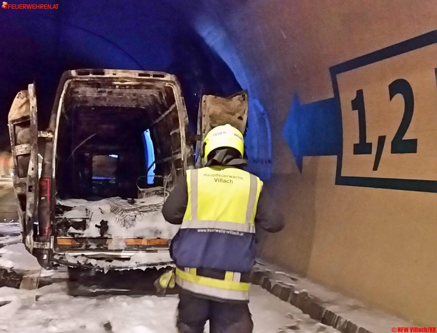 Kurz vor 12 Uhr mittags wurden die beiden Portalfeuerwehren für den Oswaldibergtunnel zu einem Fahrzeugbrand in den rund 4,2 Kilometer langen Tunnel alarmiert. Als die Hauptfeuerwache Villach gemeinsam mit den Kräften der FF Töplitsch an der Einsatzstelle, die ca. 1,2 Kilometer vor dem Westportal in Fahrtrichtung Salzburg lag eintraf, stand ein Kleintransporter in Vollbrand.