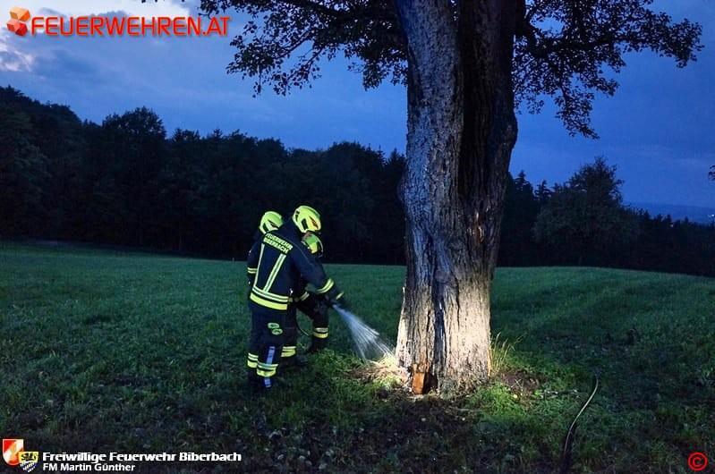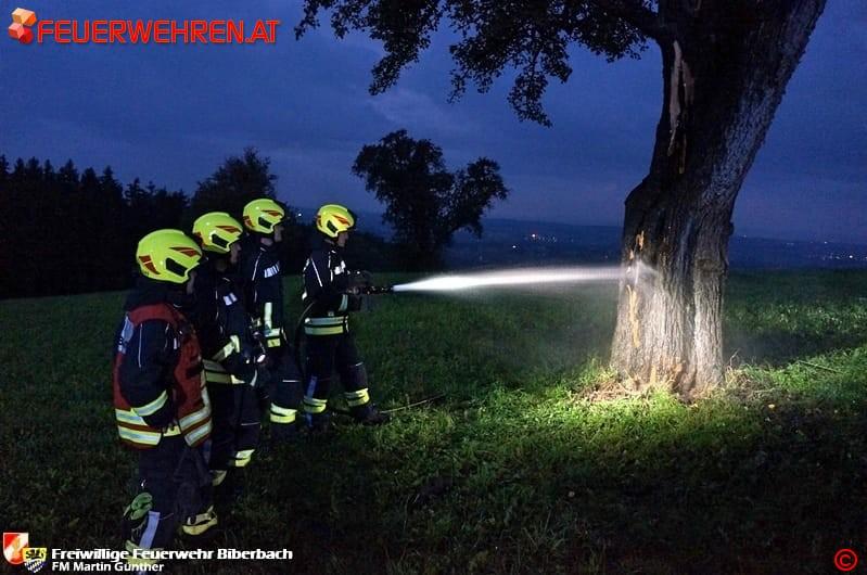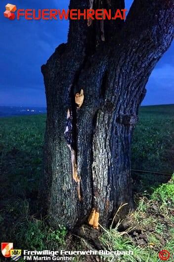 Am Abend des 20. September 2017 fing während eines Unwetters ein Baum Nähe Adersdorf in Biberbach Feuer. Ein Anrainer wurde auf den Brand aufmerksam und verständigte die Einsatzkräfte.
