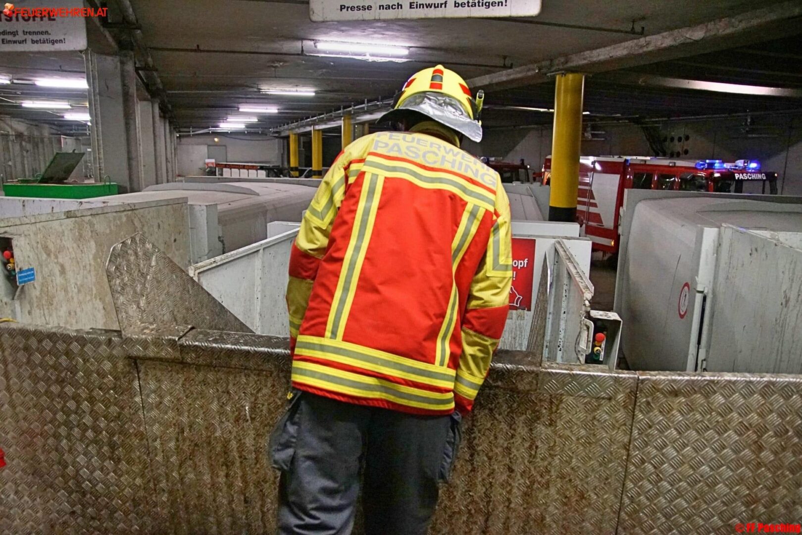Ein Atemschutztrupp der FF Pasching konnte den Brand rasch unter Kontrolle bringen und in weiterer Folge ablöschen. Der Abfallcontainer wurde mit Unterstützung der Firma Leitner aus Pasching im Freien gesichert abgestellt.