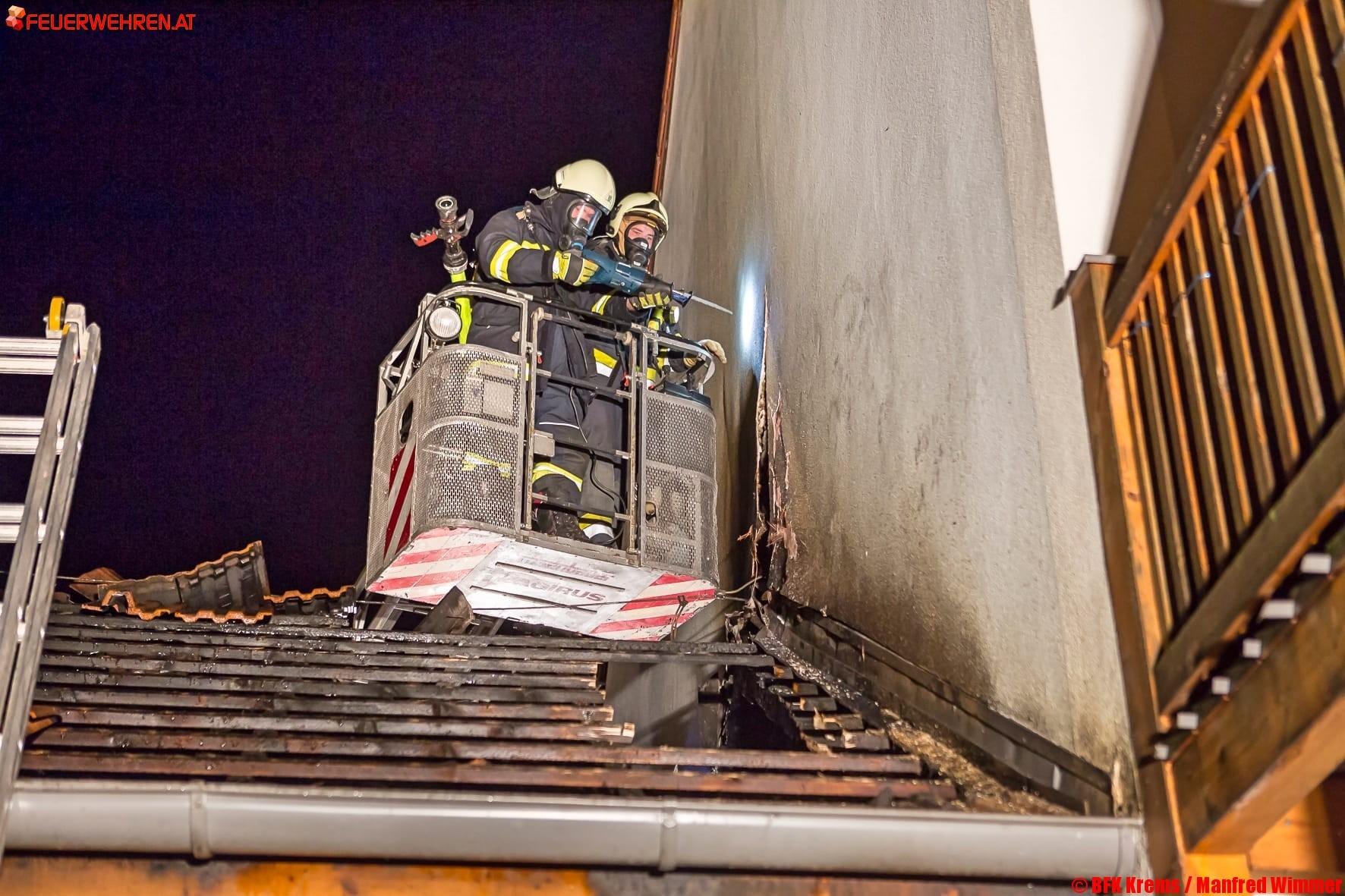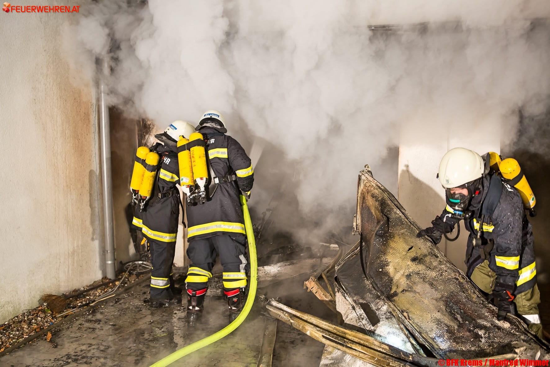 Kurz vor 5.00 Uhr wurde außerdem die Feuerwehr Krems angefordert. Diese rückte mit einem weiteren Tanklöschfahrzeug und einer Drehleiter aus. „Ein Nachbar hatte die Einsatzkräfte verständigt. Bei unserem Eintreffen stand die Garage in Vollbrand“, so Strondl. Die Rauchsäule wurde auch von Augenzeugen in Krems wahrgenommen.
