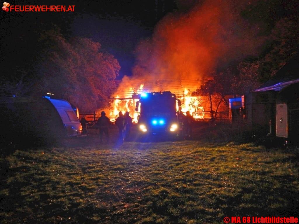 Dienstagnacht geriet in Wien – Donaustadt das Strohlager eines Reitsportvereins in Brand. Beim Eintreffen der Berufsfeuerwehr Wien war bereits das gesamte Stroh in der Lagerhalle vom Brand betroffen. Funkenflug gefährdete zudem die nahegelegenen Nachbarobjekte.
