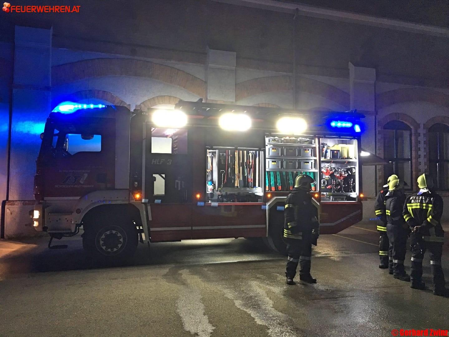 Die Betriebsfeuerwehr Schoeller-Bleckmann wurde am Dienstag, den 24.04.2018 um 23:33 Uhr mittels Sirene und Pager zu einem Brandeinsatz gerufen. Eine Brandmeldeanlage hat einen Feueralarm in einem holzverarbeitenden Betrieb im Industriepark Ternitz ausgelöst. Bei der Erkundung war bereits ein Teil der Produktionshalle stark verraucht.