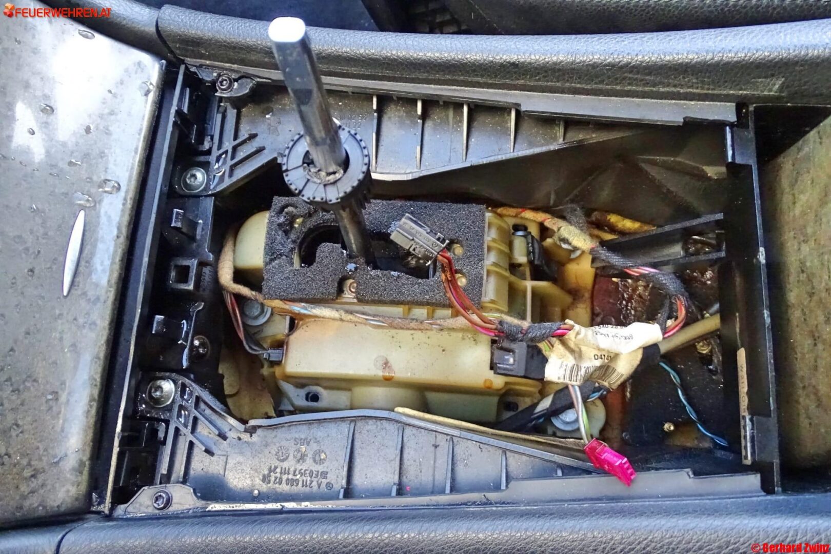 Da es aus der Mittelkonsole des Fahrzeuges rauchte, wurde das Fahrzeug mit einem Wagenheber angehoben, um mit der Wärmebildkamera den Brand zu lokalisieren. Nach teilweiser Demontage von Fahrzeugteilen konnte der Brand abgelöscht werden.