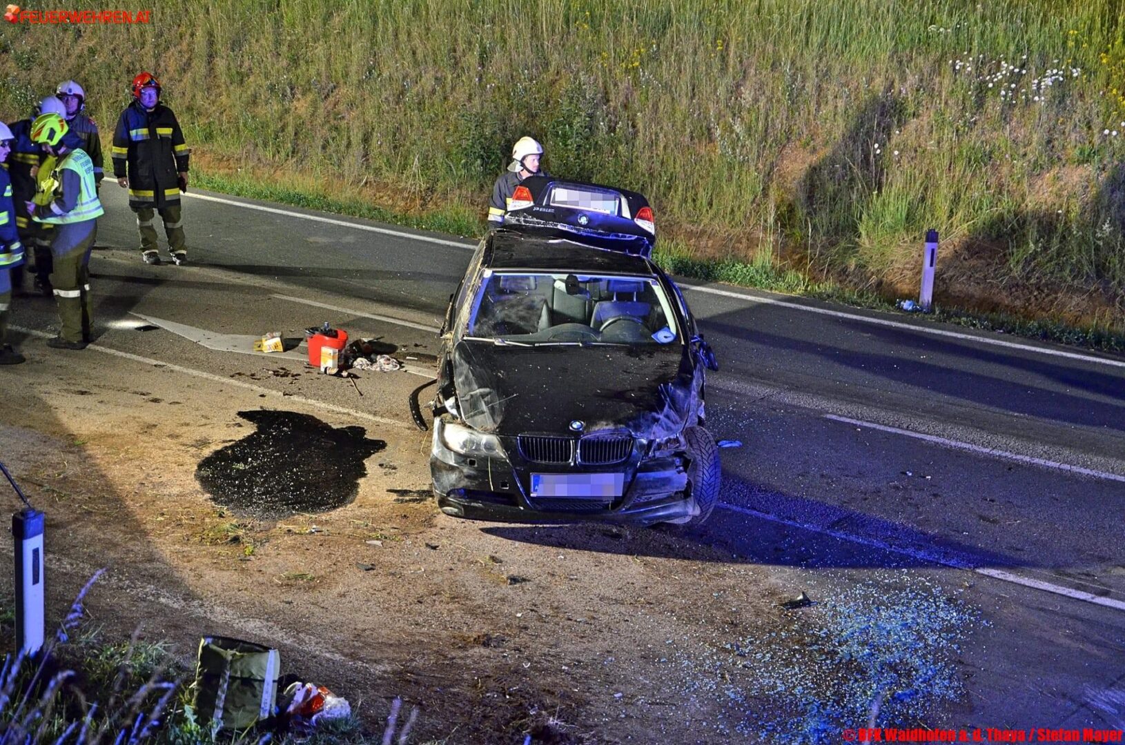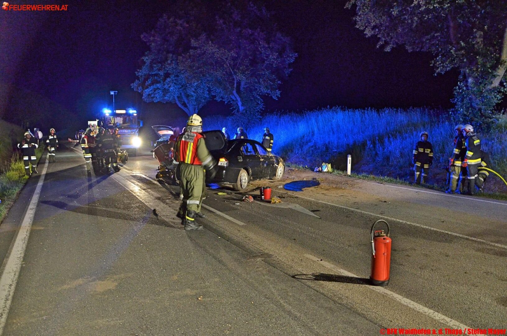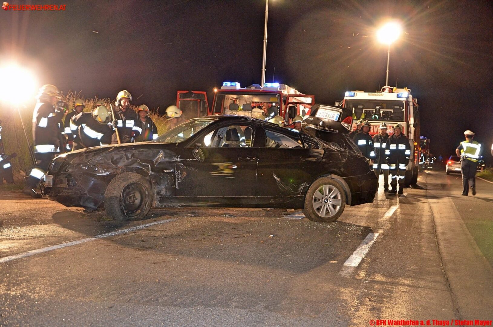 Während der Löscharbeiten in Großgerharts gab es um 00:18 Uhr eine weitere Einsatzmeldung. Auf der B5 kam es zu einem schweren Verkehrsunfall.