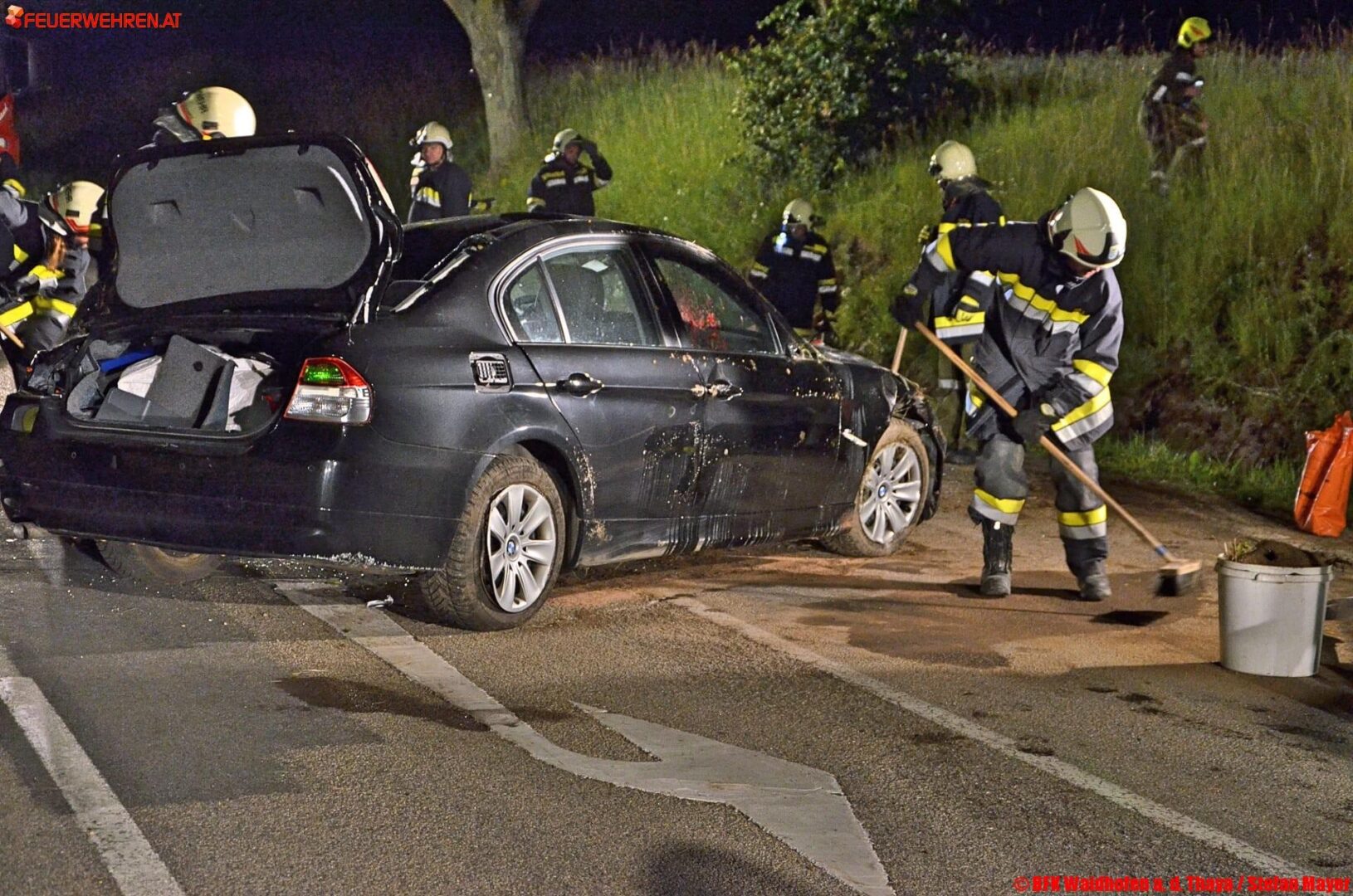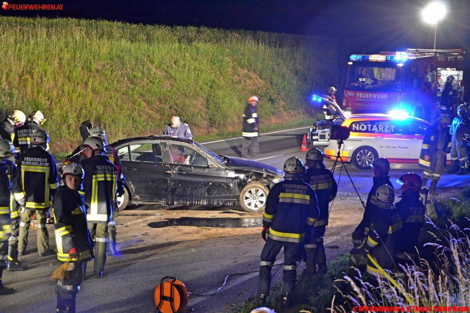 Die Frau fuhr mit einem BMW von Weinpolz kommend Richtung Waidhofen. Kurz vor der Kreuzung mit der Zufahrt nach Vestenpoppen (Gemeinde Waidhofen an der Thaya-Land) kam die Frau aus derzeit unbekannter Ursache links von der Fahrbahn ab, überschlug sich mehrmals und kam schließlich quer auf der Straße auf den Rädern zum Stehen. Da bei der Notrufmeldung der Unfall zwischen Weinpolz (Bez. Zwettl) und Lichtenberg (Bez. Waidhofen an der Thaya) bekanntgegeben wurde, alarmierte die Landeswarnzentrale vorerst die Feuerwehren Weinpolz, Scheideldorf und Windigsteig. Schnell wurde jedoch klar, dass der Unfallort auf Höhe Vestenpoppen liegt.