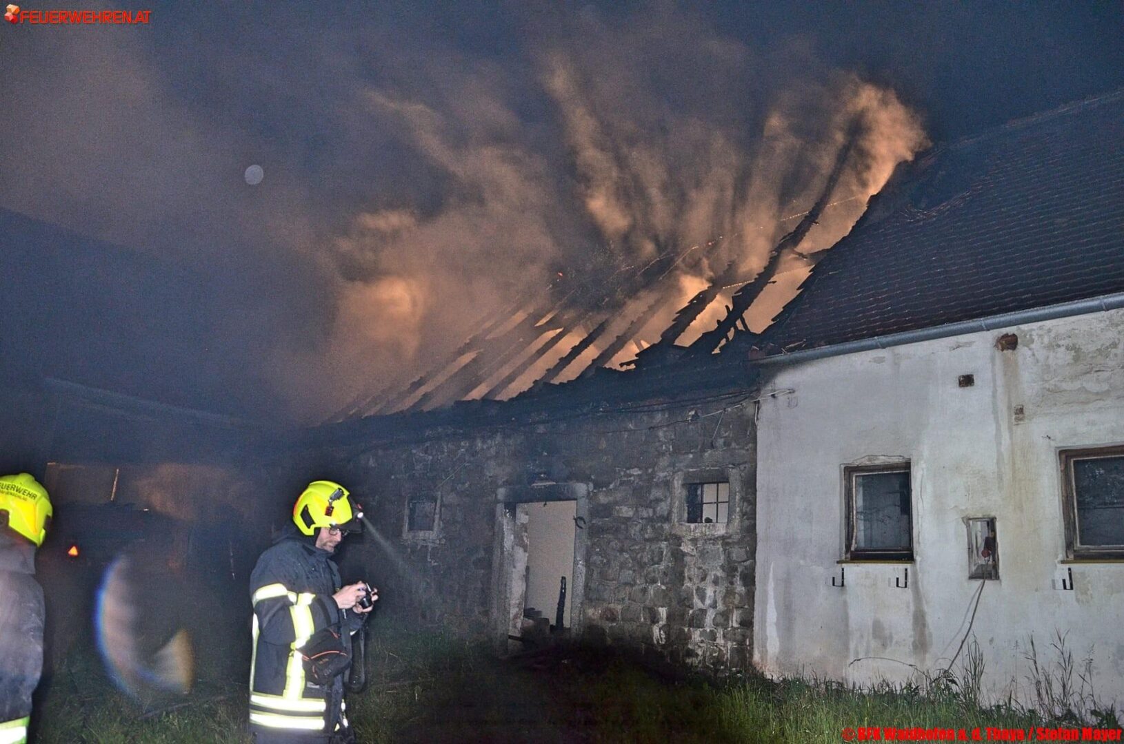 Sonntagnacht – Zeitgleich Großbrand und schwerer Verkehrsunfall im Bezirk Waidhofen an der Thaya